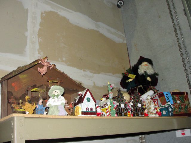 Shelt of assorted holiday decorations