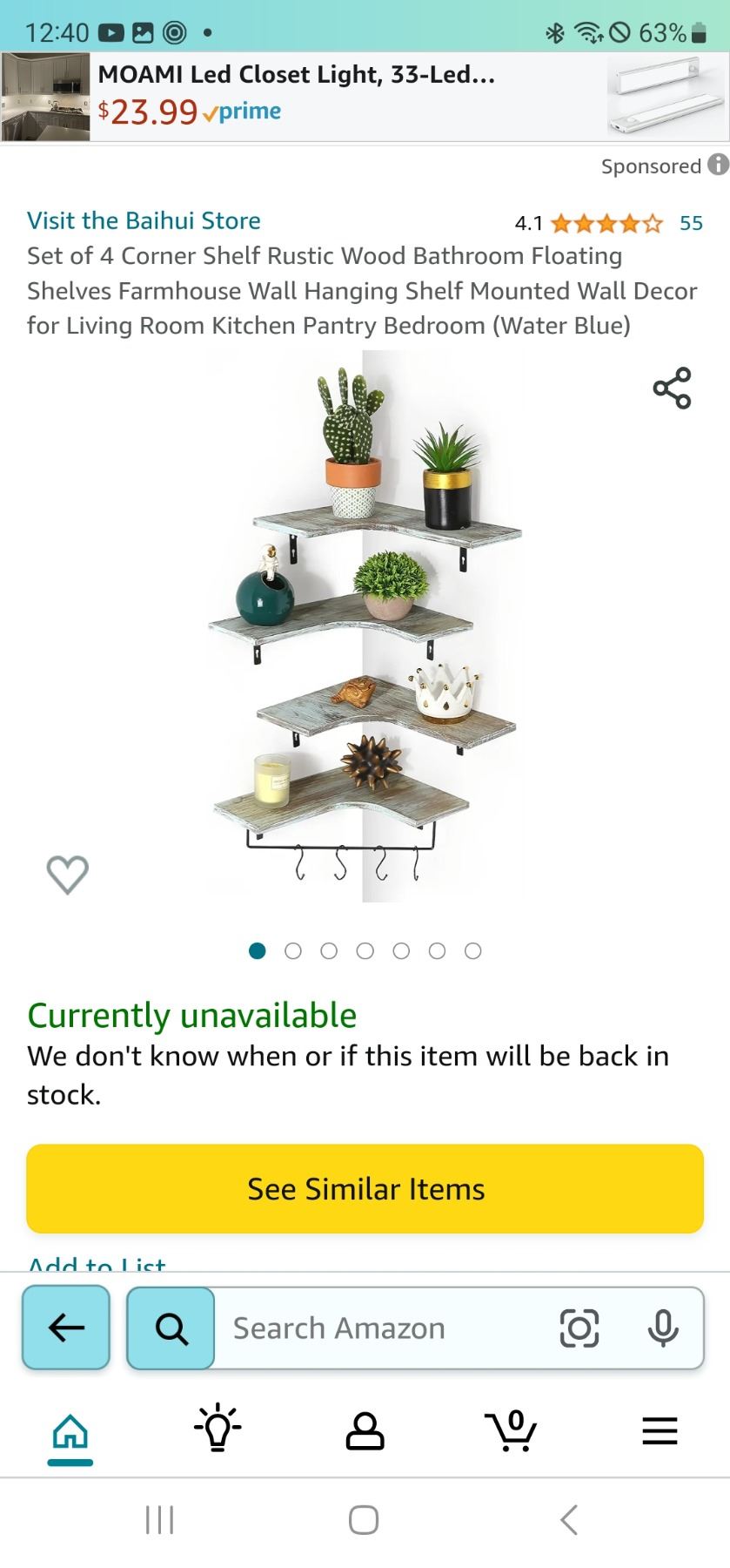 Crugla Set Of 4, Floating Cornor Shelves, Water Blue, Open Box, Like New Condition