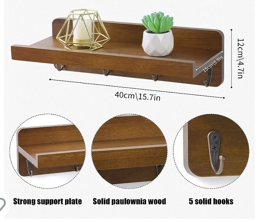 Vrupin 2 Pack Natural Solid Wood Floating Shelves, Wall Mounted Rustic Brown, Open Box, Like New Condition