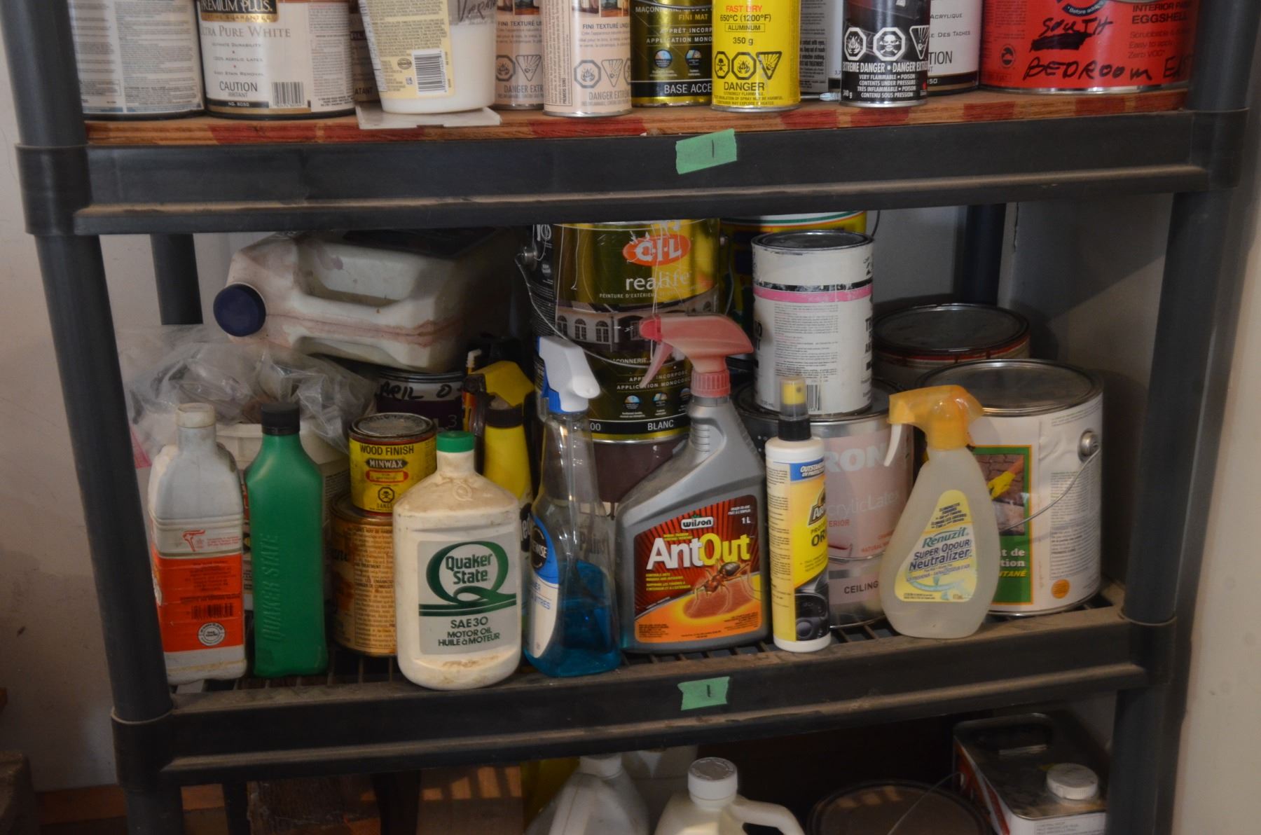Shelving and Contents, Paints, Stains, Insulation, Odds