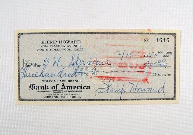 Shemp Howard (The Three Stooges) Personal Hand-written Idea Notebook Rarely do we have the chance to delve into the mind of a creative genius. And one of the greatest was Shemp Howard, said to be the "father of the Three Stooges". The oldest of the "Horwitz" brothers, Shemp fell in love with vaudeville at an early age, and decided showbiz was going to be his calling. From the time he could write, he began to scribble ideas for jokes, skits, gags, stories, and monologues on whatever paper he could find. With his brother Moe, he began to work the vaudeville circuit, until 1922 when they meet fellow former school mate Ted Healy, and with Larry Fine began a successful act. Hollywood soon discovered Shemp and he starred in some of the great classic comedies. It was in his independent days that he saw that his fellow Stooges didn't need Ted, who had become an absolute tyrant, and they went on their own. The rest is history. From his long-time wife Babe's personal collection this is Shemp's personal "idea notebook" that he carried with him everywhere. It is filled with his hand-written notes of his jokes, one-lines, observations, sight gags, stories, thoughts (many of which are surprisingly "X" rated!), play dates, and all sorts of lists and accountings. He also used the notebook to hold his ever growing scraps of what he called "creative confetti", that included clippings he would take of jokes, cartoons and articles from various magazines and newspapers, as well as more of his own ideas he had written on whatever paper was available. Also included are notes and addresses from other famous stars of the time. A truly unique one-of-a-kind collectable. Also included is a cancelled check from Bank of America from Shemp's account, signed by Shemp in 1952. The notebook comes with a Letter of Provenience from Stooge expert and collector Dan Lange. (Notebook is 4"x6").