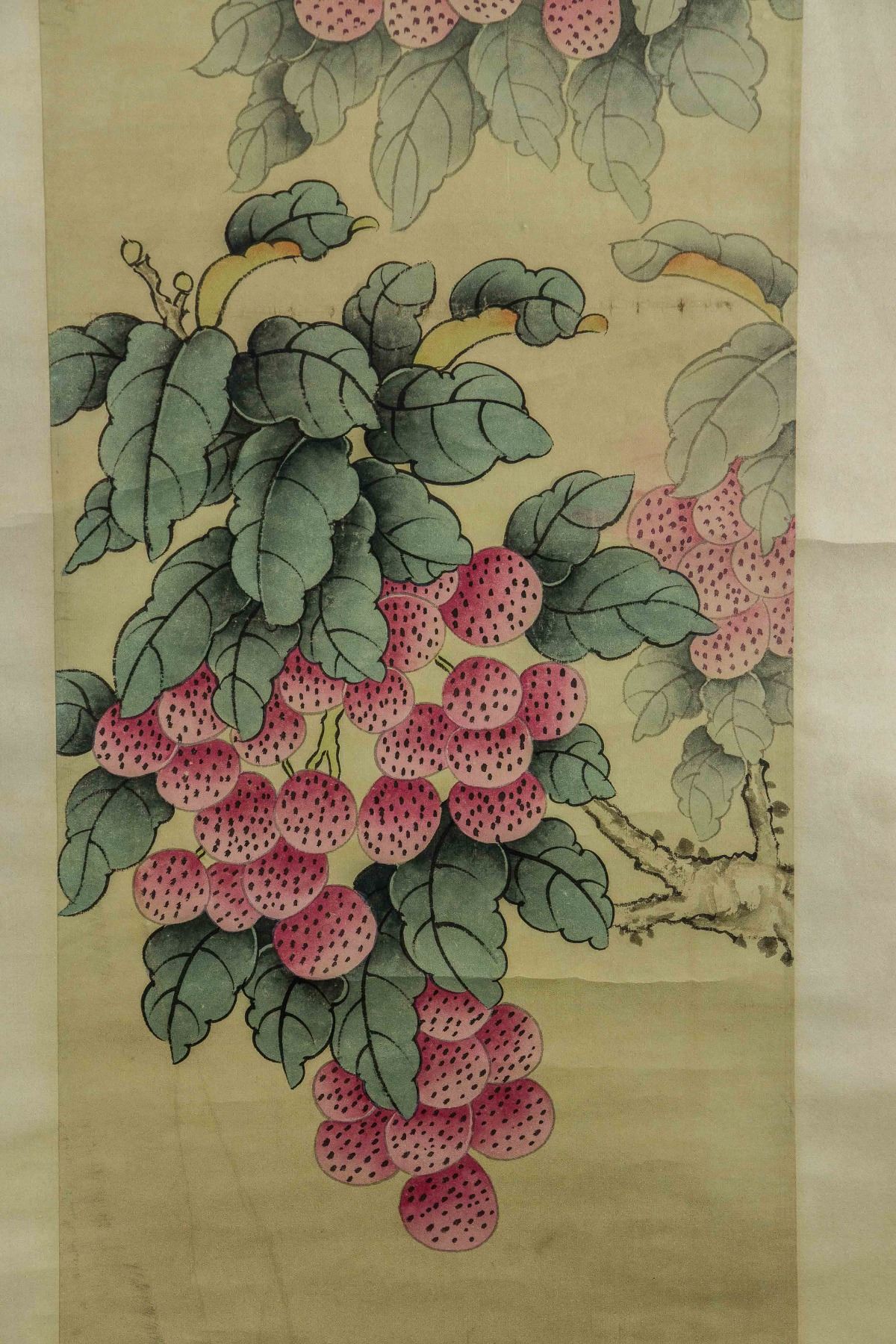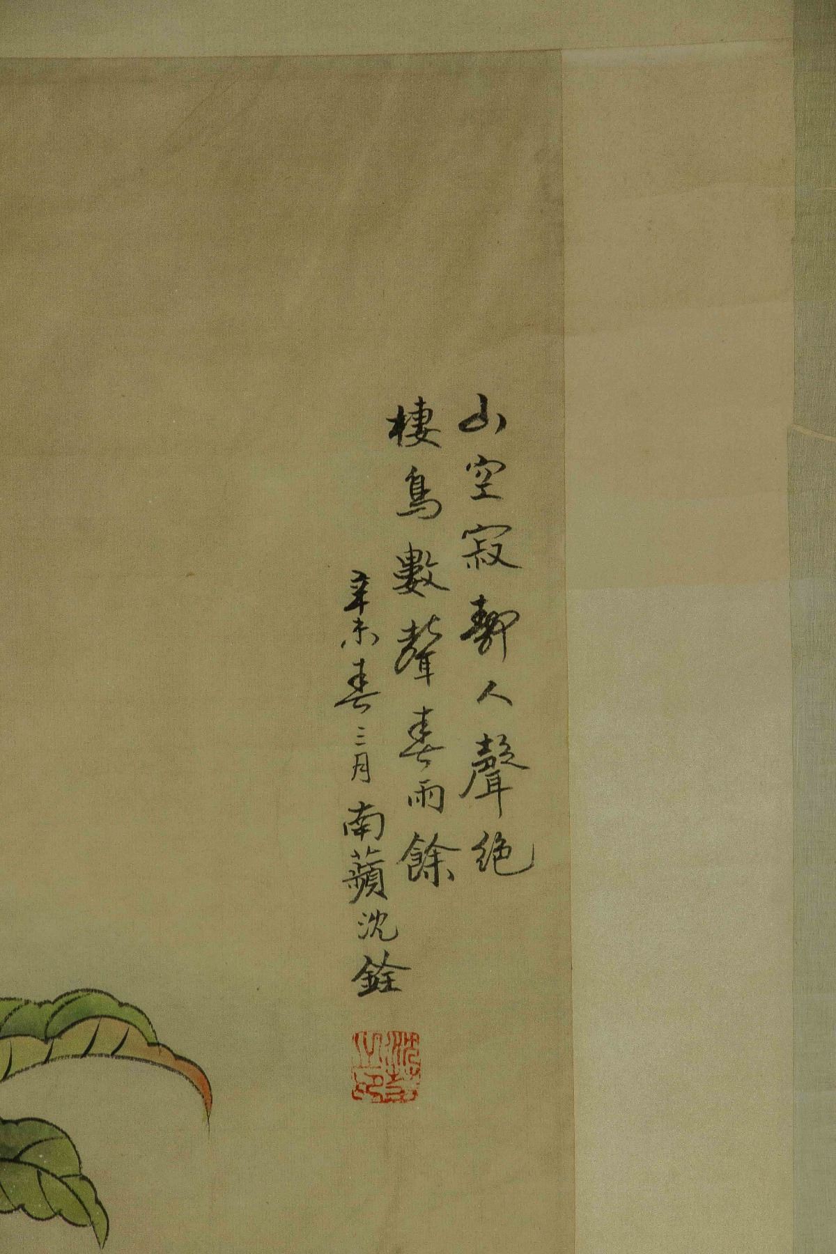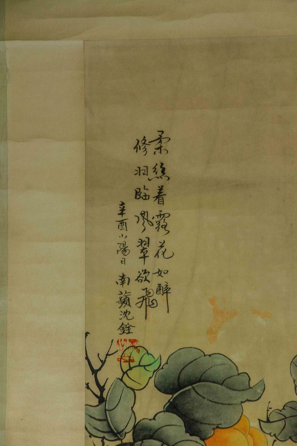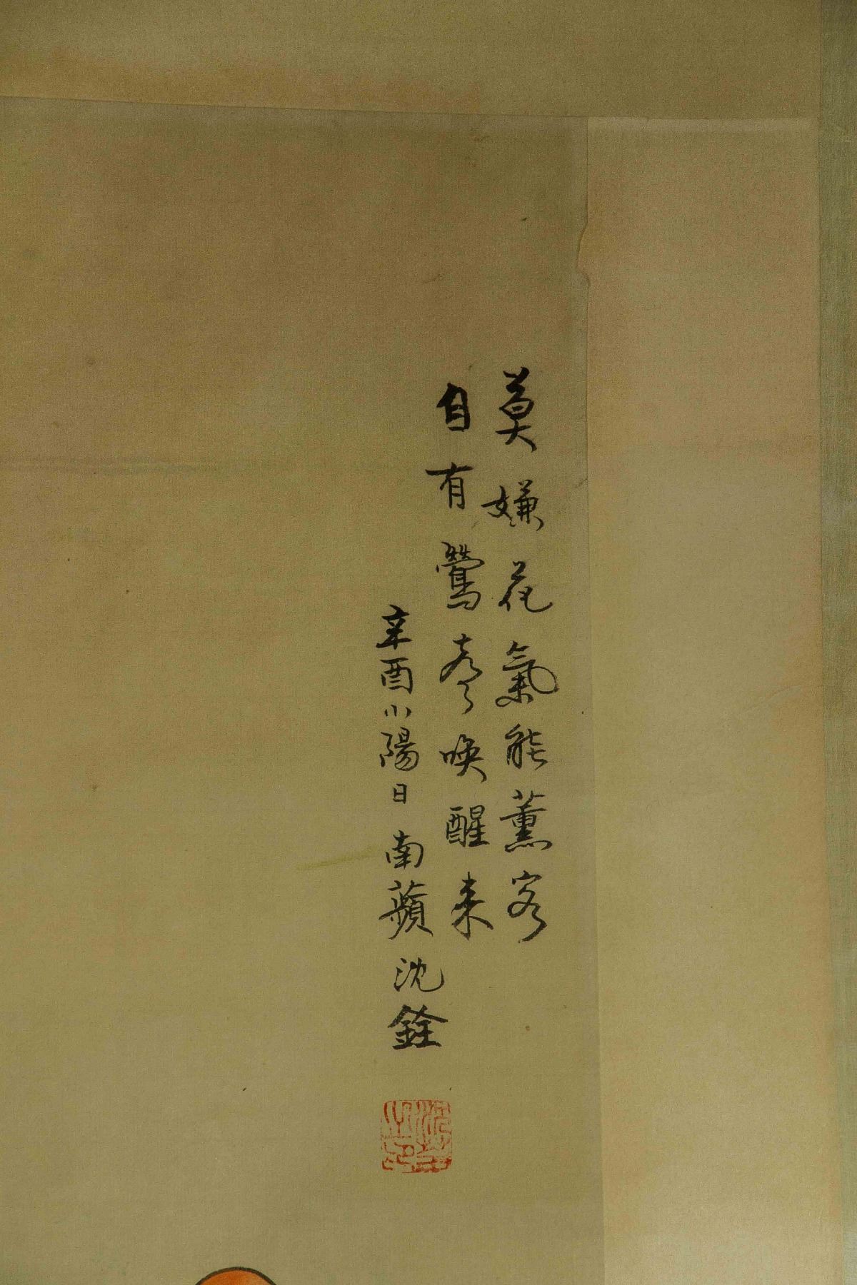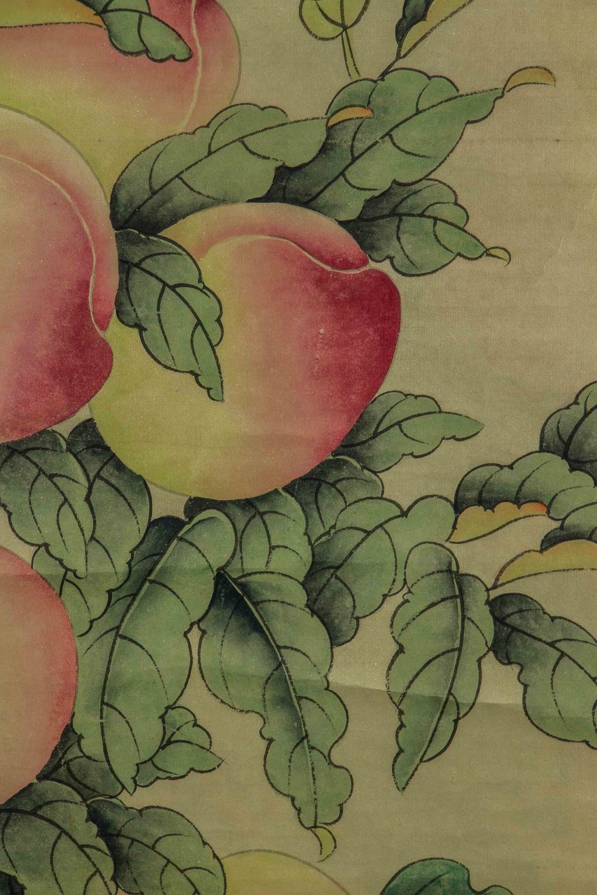 Four pieces of painting, depict orioles standing on trees of pomegranate, peach, persimmon and lychee; Chinese ink and watercolour on paper; hanging scroll; signed Shen Quan (1682-1760); each one inscribed one artist seal; 190 cm × 50 cm