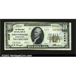 Shenandoah, PA - $10 1929 Ty. 2 Merchants NB Ch. # 4546A high grade circulated Type 2 note from a Schuylkill County bank that is represented by 13 small notes in the census. Extremely Fine-About Uncirculated.  Important notice: We expect to be auctioning lots at the rate of 200-250 per hour. Sometimes eBay Premier live bid software cannot keep up with that pace, so we strongly recommend that you place a realistic proxy bid now as insurance to avoid disappointment. Also please note that all Heritage/CAA lots purchased through eBay Premier carry a 20% Buyer's Premium.