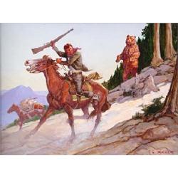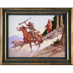 Shep Chadhorn (deceased) Oil, "Bear Escape," 1974, 12" x 16", signed lower right, Est $1,000 - $1,500