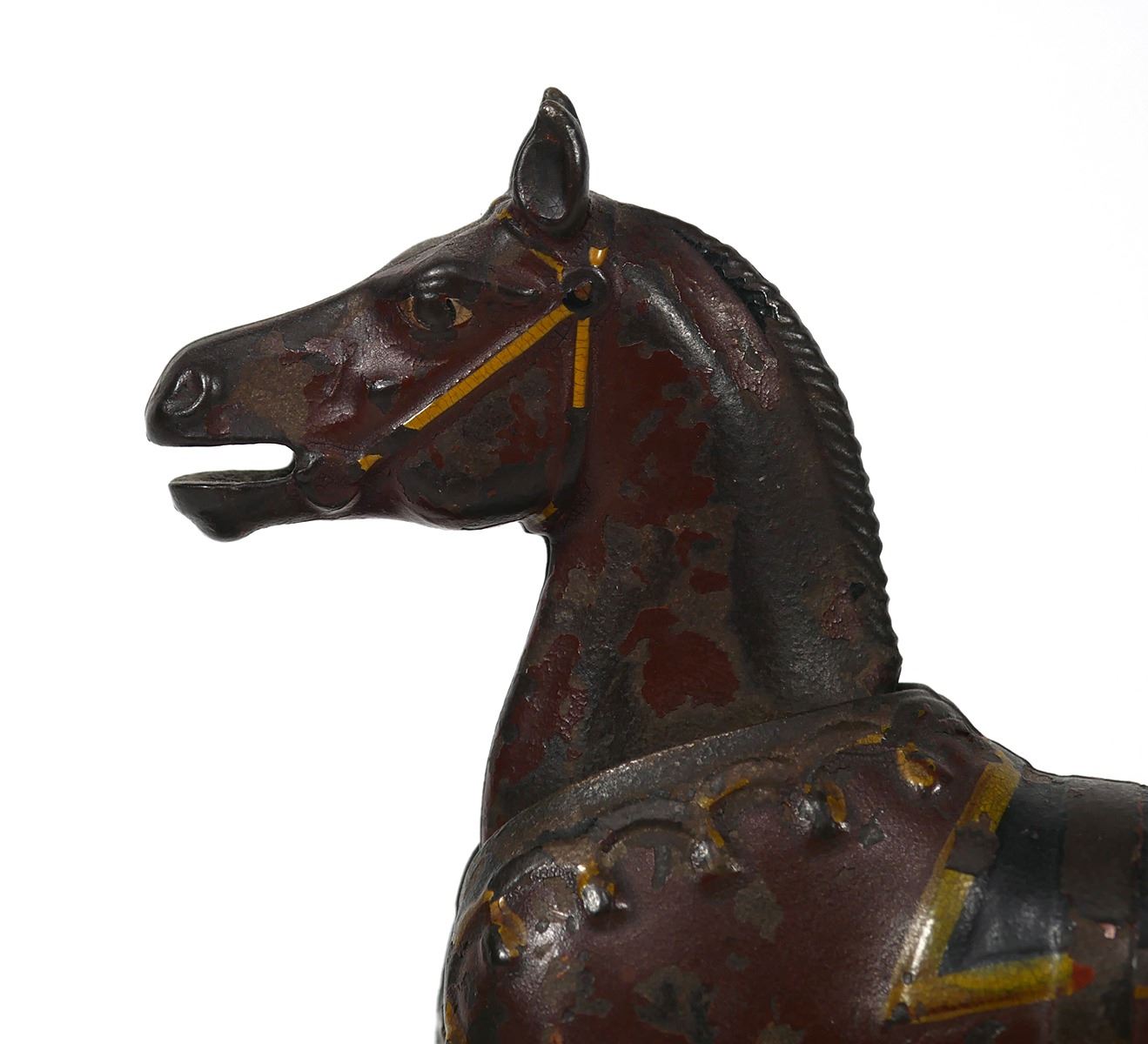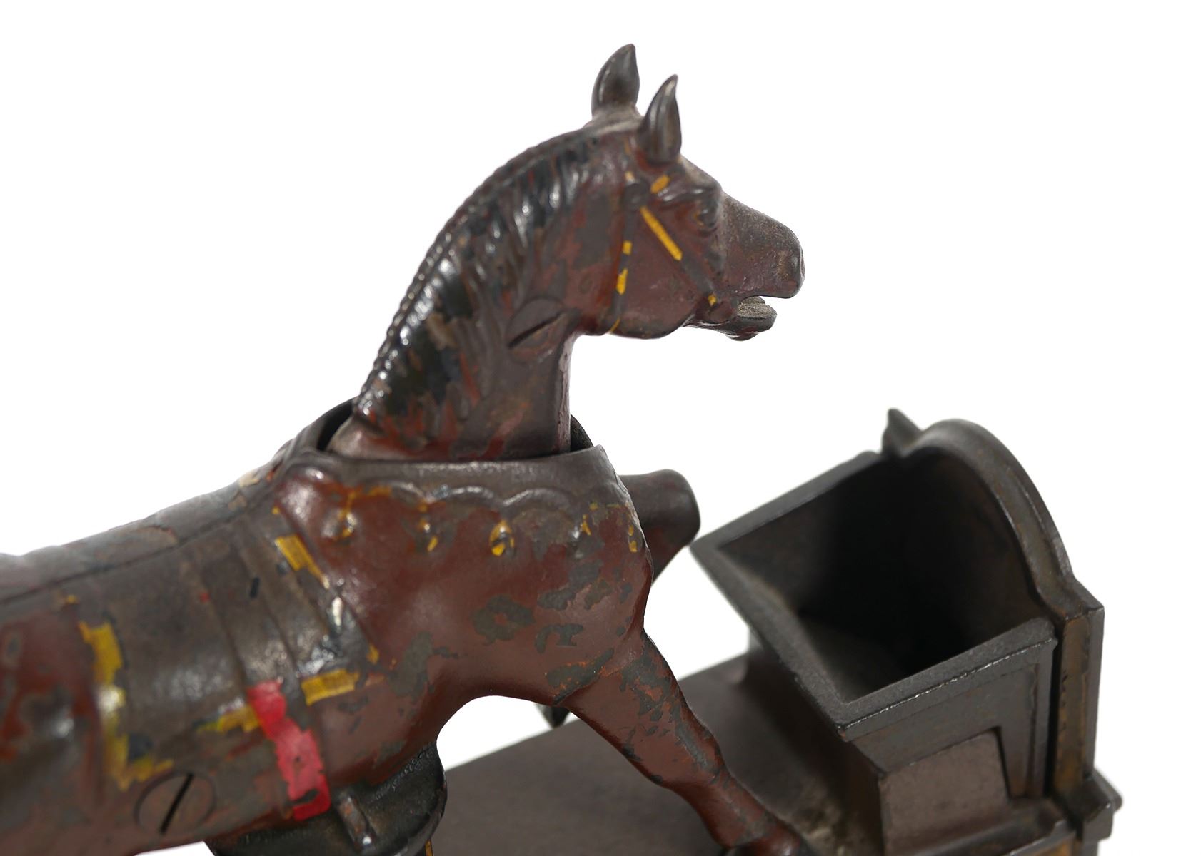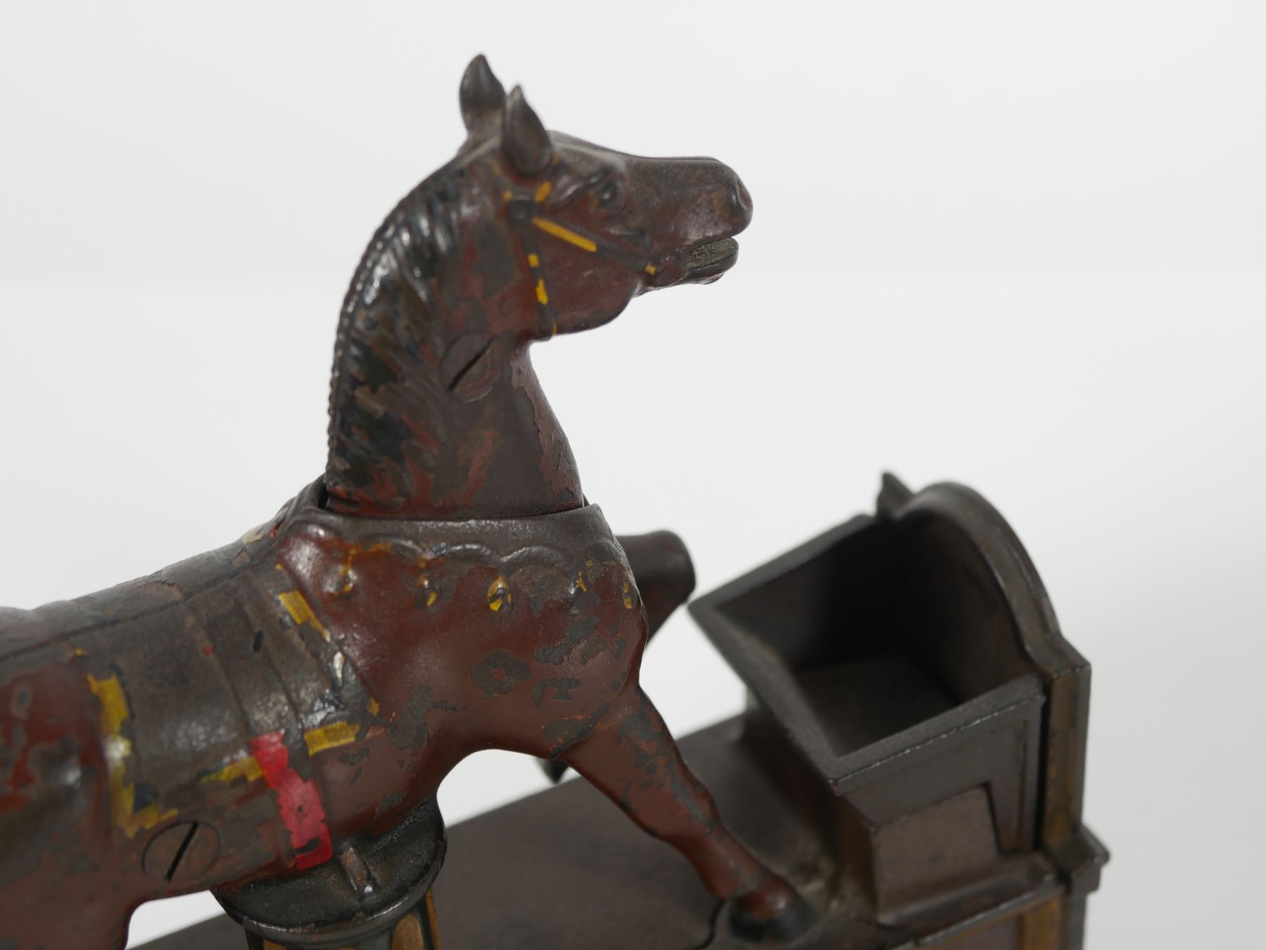 Shepard Hardware Co. Cast Iron Trick Pony Mechanical Bank, circa 1880s. Excellent condition with minor surface wear. Measures approximately 7 3/4" tall x 7 1/2" long x 2 1/2" deep.