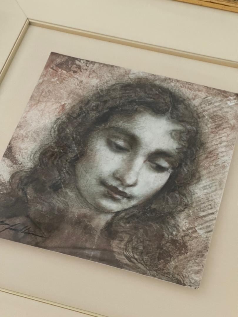 Exquisitely framed, this 1995 Richard Franklin original drawing on canvas measures 24x22.75"and 9x9.5"  image size.