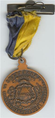 Sherbrooke Centennial 1837-1937 medal with ribbons and clasp. Beautiful medal.