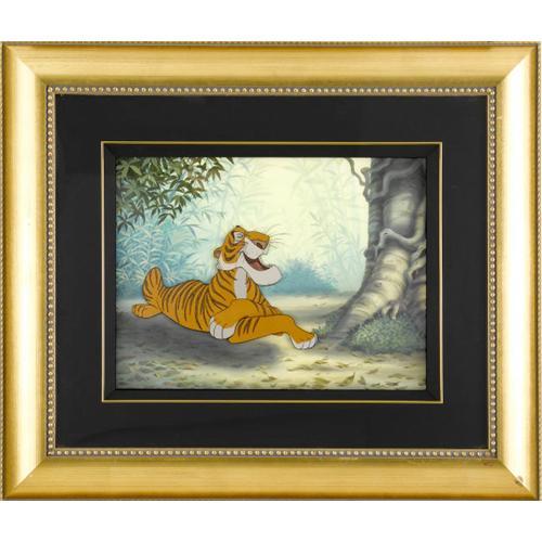 <B>Shere Kahn "The Jungle Book" Production Cel with Hand Prepared Background Original Art (Walt Disney, 1967).</B></I> The sublimely villainous and autocratic Shere Kahn takes center stage in this superb original production cel. Image area of 15" x 11". Framed and in Excellent condition.
