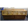 This Sherer mercantile counter has 15 drawers with handles embossed, "Sherer." Circa 1910s. Condition (Excellent). Size 73-1/4" x 33-1/2" x 28-1/4"
