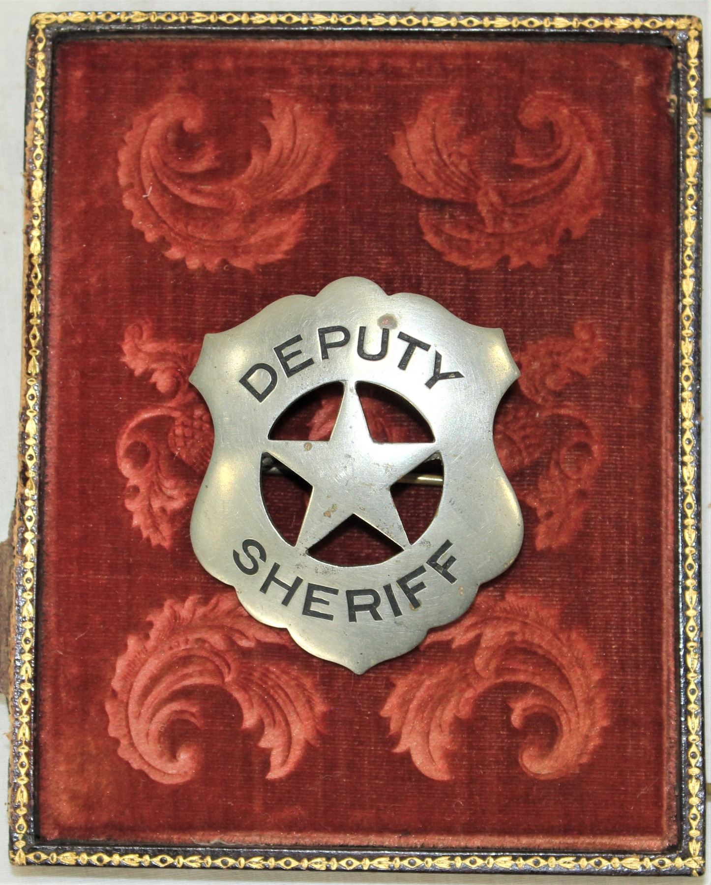 Interesting early Deputy Sheriffs badge in the shaped of a shield with a cut-out star, and pin back.