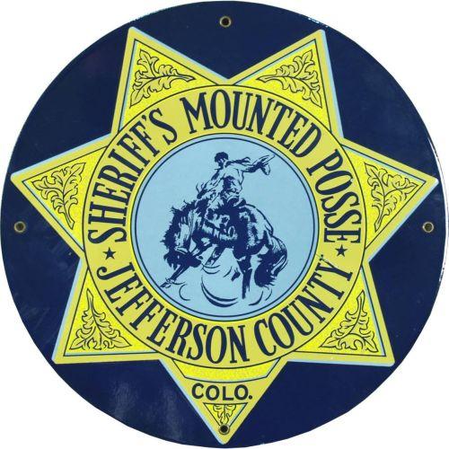 Sheriff's Mounted Posse Porcelain Sign NOS still in paper wrapper U.S. Porcelain Enamel Co. 1940's