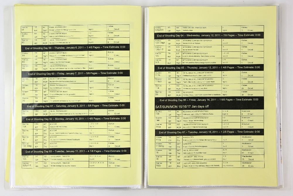 Sherlock Holmes: A Game of Shadows (2011) Crew items including Premiere Ticket, Call sheets, Shooting Schedule, Movement Order, Location plans, Maps, Additional Photography booklet & breakdown & other paperwork.