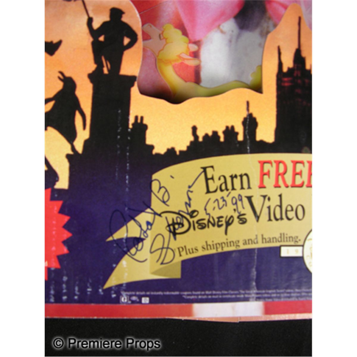 Mary Poppins VHS 3-D display signed by the two Sherman Bros., songwriters for the classic film. With ad for the signing. (30x30x3)Oversized item. Additional postage required.