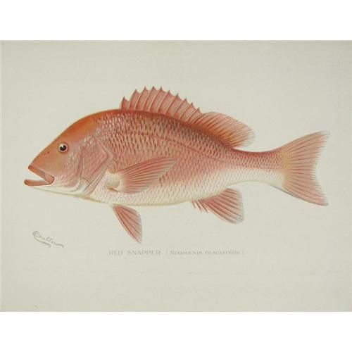 , Sherman F. Denton (1856-1937) , Chromolithograph , "Red Snapper" , 7" x 10 3/4" , Signed in Plate , (5901)