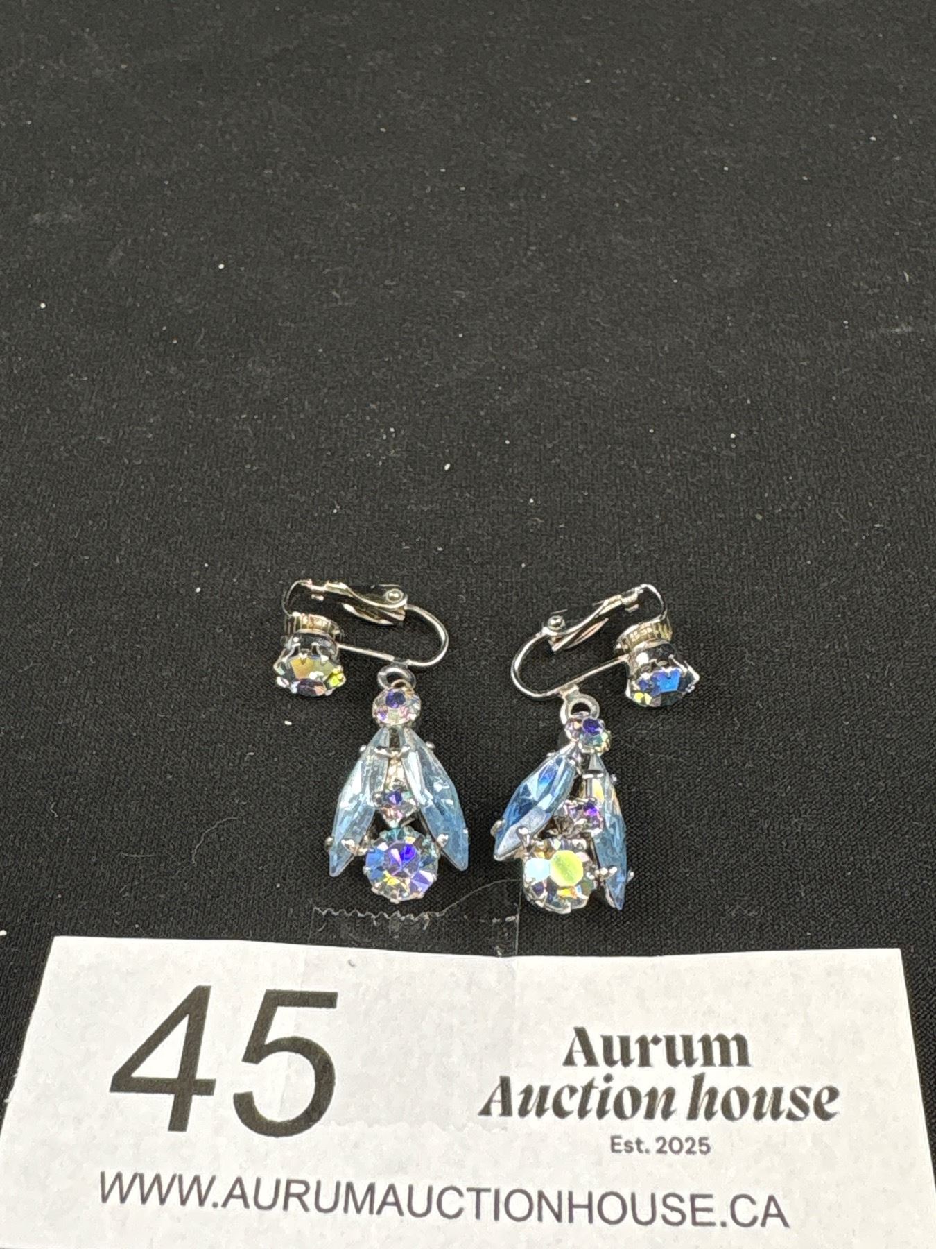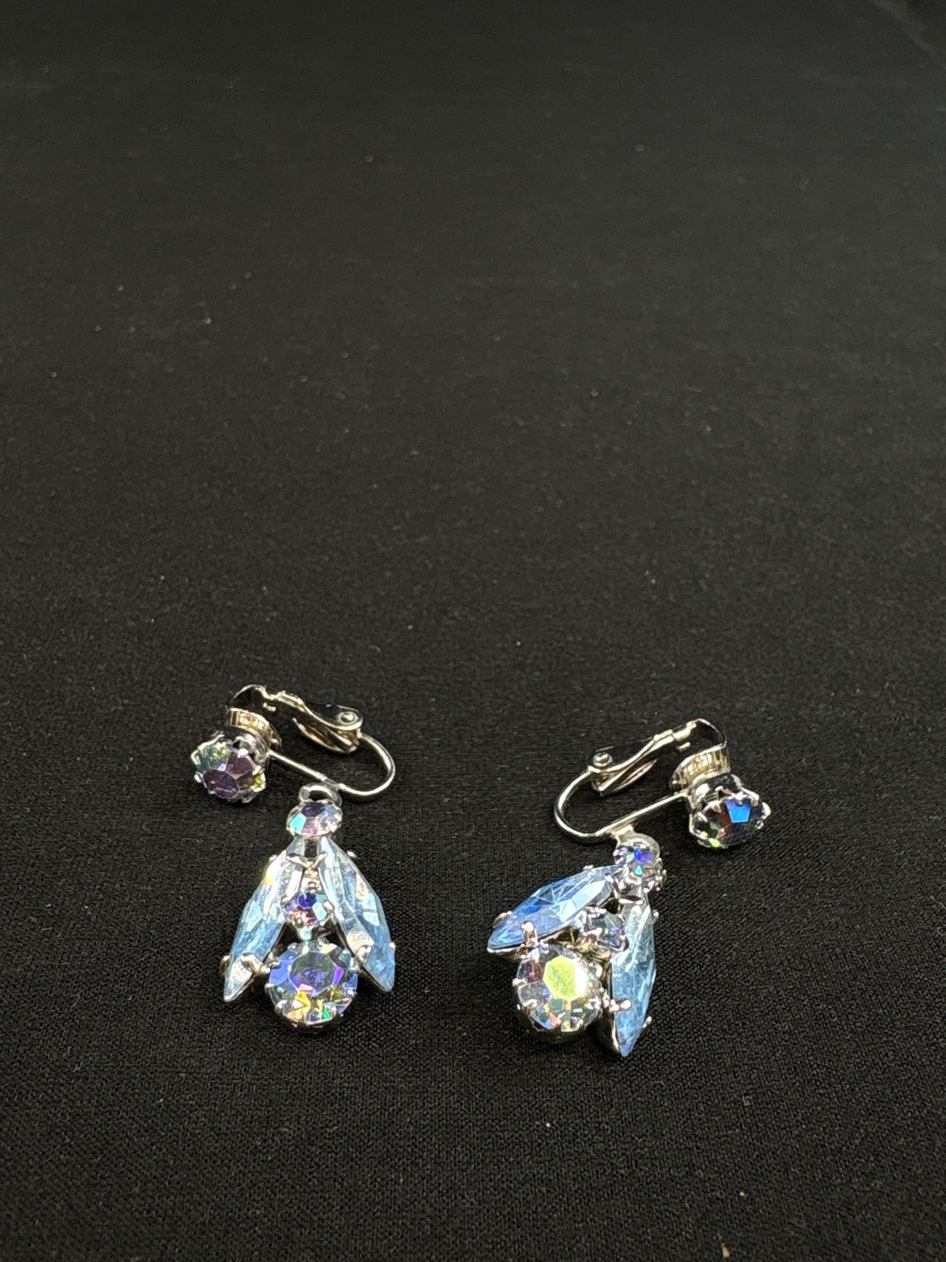 Sherman Look Blue Rhinestone Drop Earrings