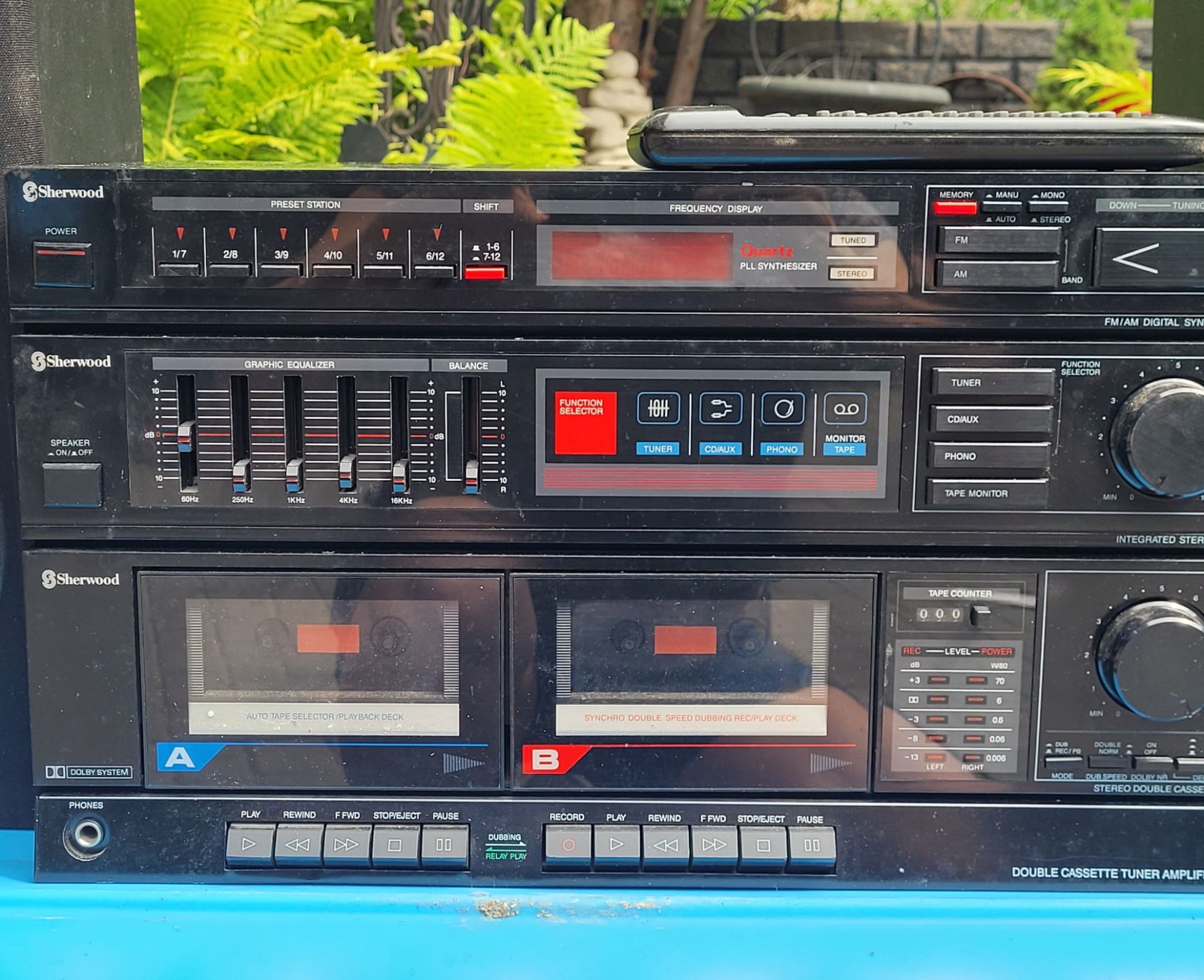 Sherwood Stereo system. AM/ FM double cassette & remote.