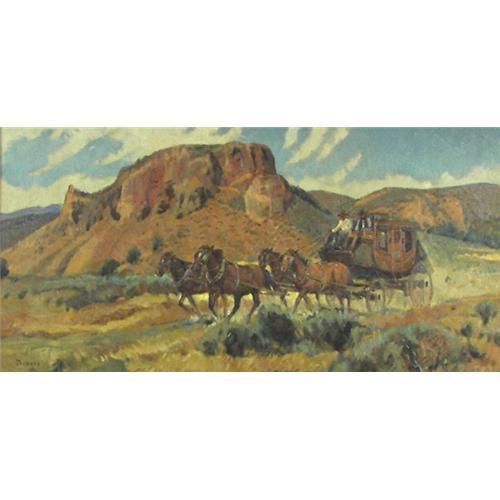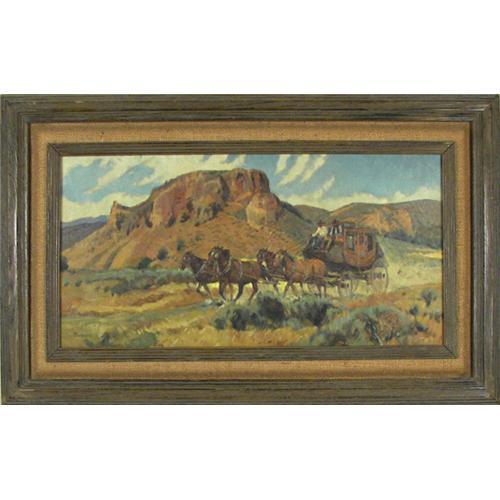Sheryl Bodily (b.1936) Oil on Canvas, Stagecoach, 10" x 20", signed lower left