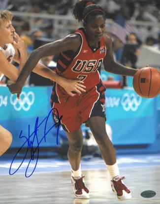 Sheryl Swoopes was the first player to be signed in the WNBA when it was created. She has won three Olympic Gold Medals and is a three-time WNBA MVP. Frequently referred to as the "female Michael Jordan," Swoopes is famous for both her offensive and defensive skills. In 2005, she averaged 18.6 points, 85% free throws, 4.3 assists, 2.65 steals and 37.1 minutes playing time per game. In 2011, she was voted in by fans as one of the Top 15 players in WNBA history. Sheryl Swoopes has hand signed this Team USA Olympics 8x10 Photo. Leaf Authentics Hologram and Certificate of Authenticity from Athlon Sports.