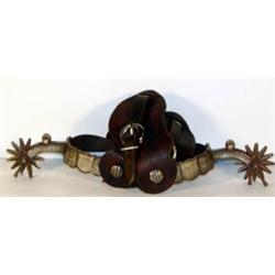 Shield Pattern California Style Spurs. Silver inlaid. Estimate $400-$800.