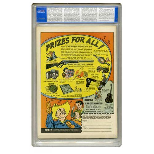 50. Since we cannot examine encapsulated notes or comics, they are sold "as is" without our grading opinion, and may not be returned for any reason. Auctioneer shall not be liable for any patent or latent defect or controversy pertaining to or arising from any encapsulated collectible. In any such instance, purchaser's remedy, if any, shall be solely against the service certifying the collectible.