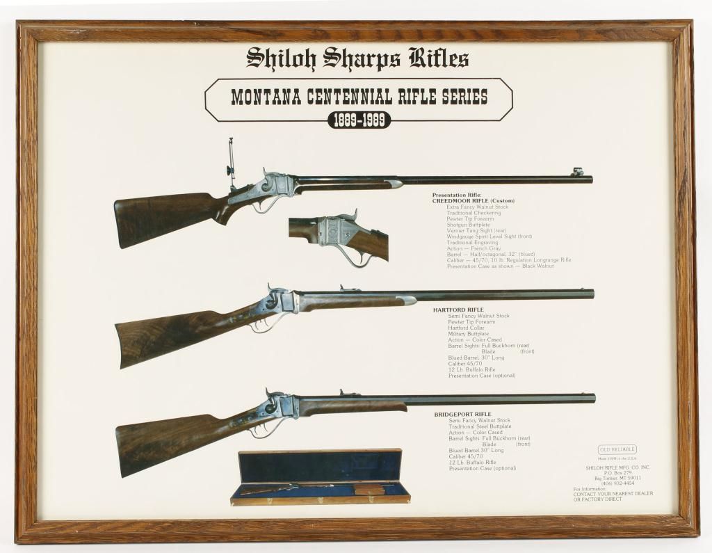 Framed, displaying their Montana Centennial 1889-1989 rifle series, image measures 17 1/2"x23 3/8".