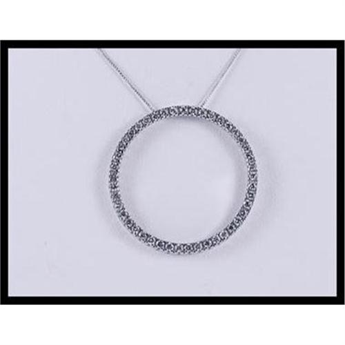 Shimmering eternity pendant with 46 full cut diamonds that weigh approximately 0.95 carats set in 14K white gold. The pendant measures 28.3 millimeters (1.11 inches) in diameter and weighs 2.50 grams total weight.
