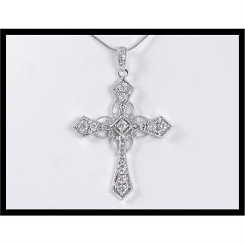 <tr><td>Title:Shimmering 18K White Gold Diamond Cross Pendant</td></tr>