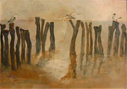 Shimon Balisky, 1917 - 1992, Birds above the Water, 1981, Oil on canvas, 34x49 cm, Signed and dated., , , , ,