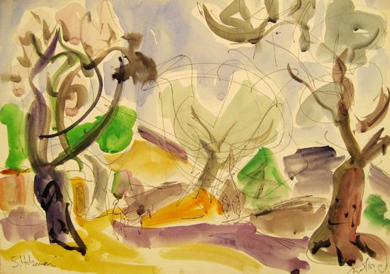 Shimshon Holzman, Israeli Art, 1907 - 1986, Landscape, Watercolor, 50x70cm, Signed., , , , Unframed.,