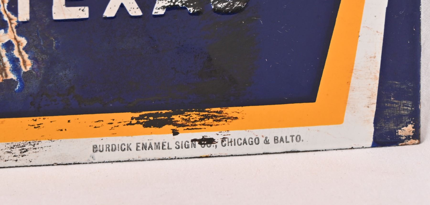 Double Sided Manufactured by Burdick Enamel Sign Co. Chicago. Measures 14" x 24" RARE
