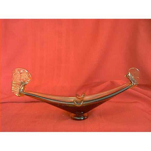Viking ship made by Viking Glass in a pretty amber and green color. The glass designed in the form of a Viking ship measures 12.5 inches long and is 5 inches high. This glass ship is in very good condition with no chips or cracks.