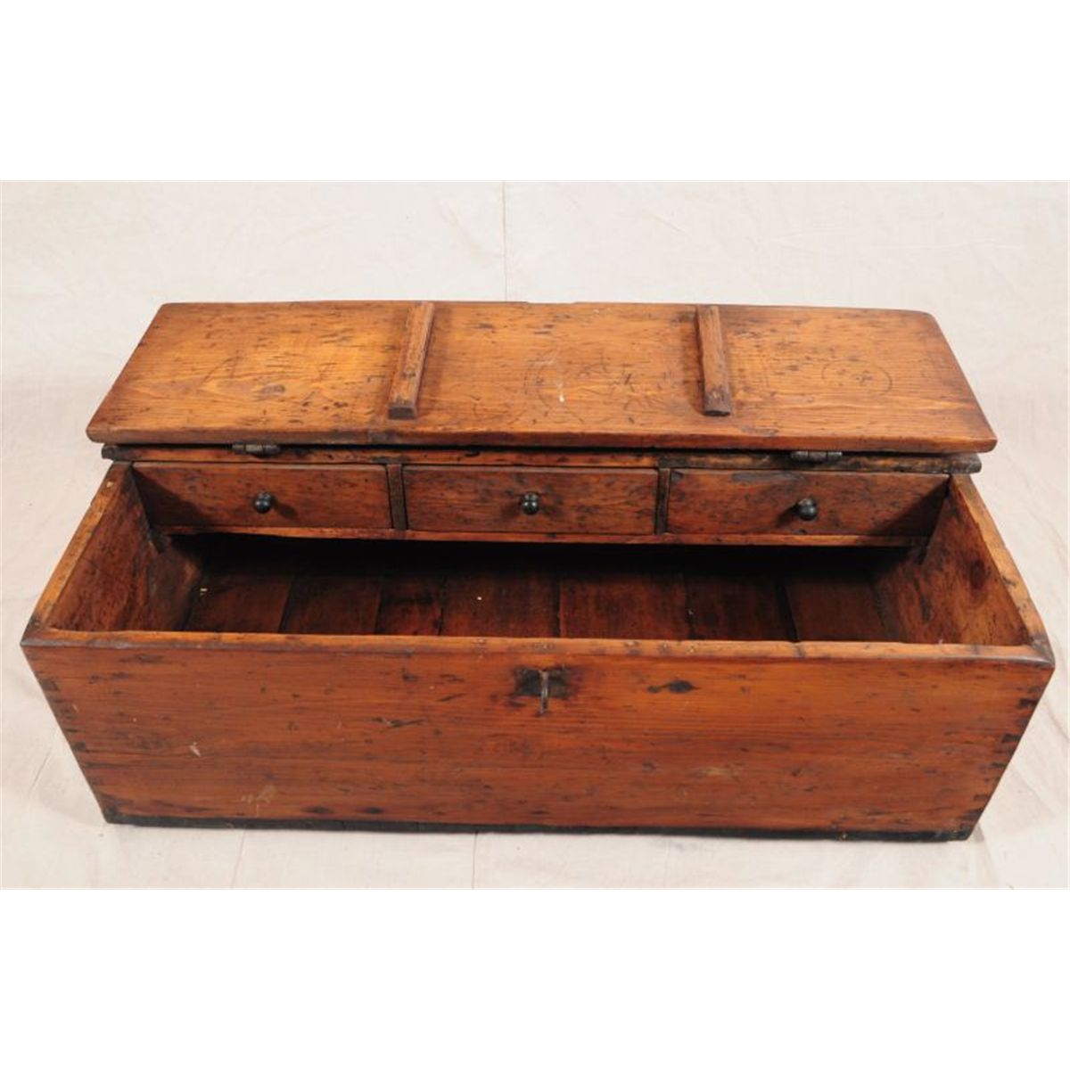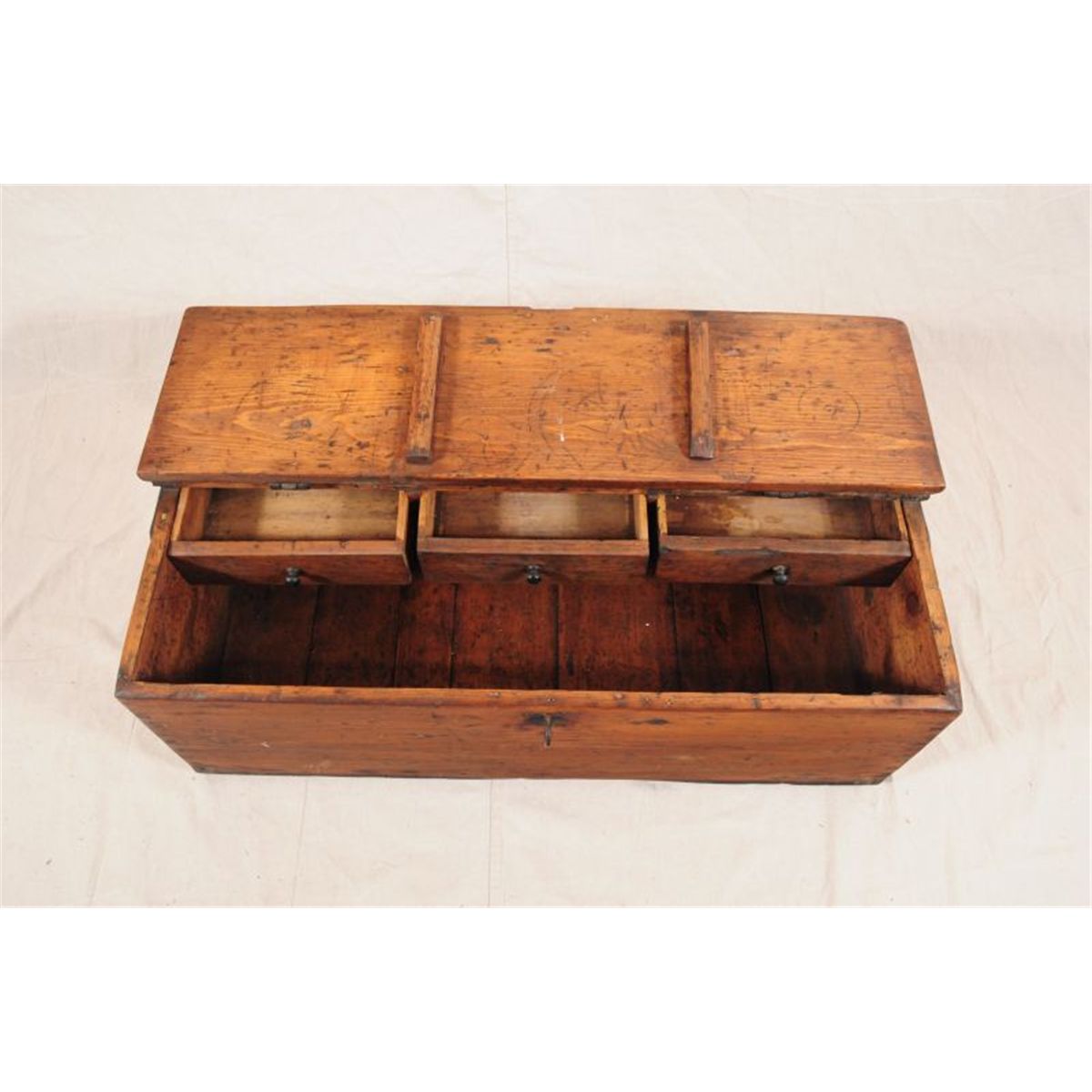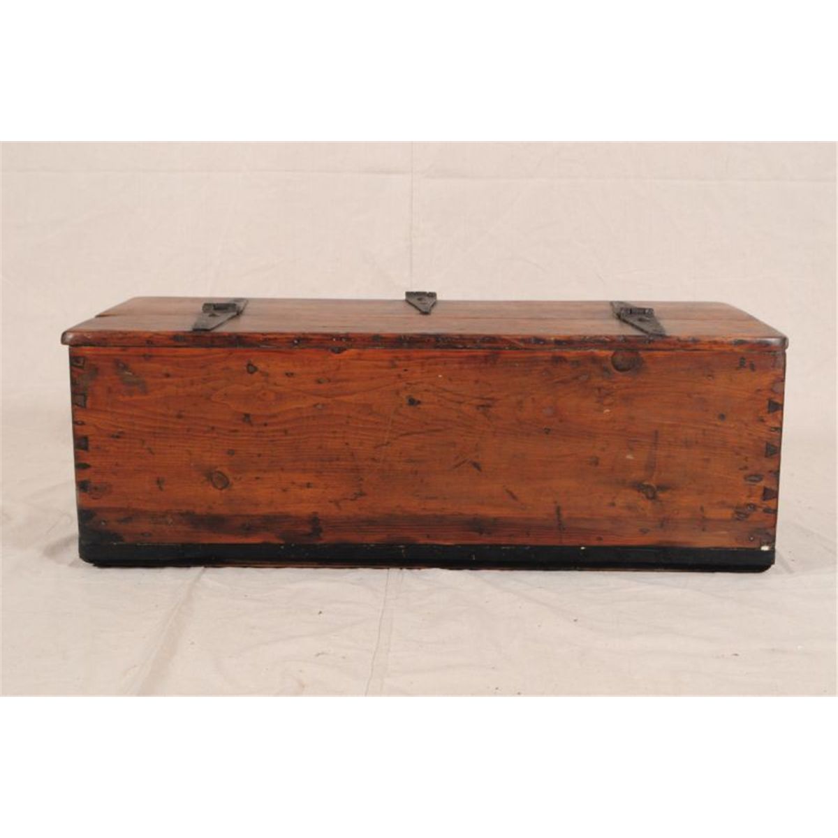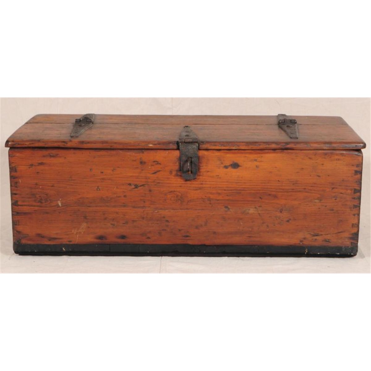 Large Hand Carved Wooden Tool Box, Dove Tailed Construction. Belonged to a Ship Bow Carver. Was purchased in New Orleans years ago by Louis. Measures 21"x41"