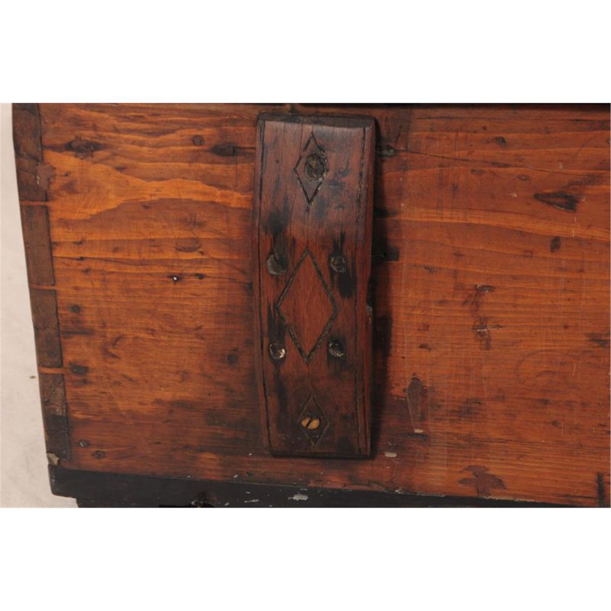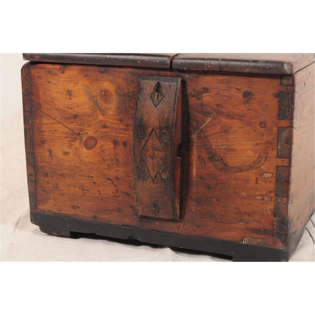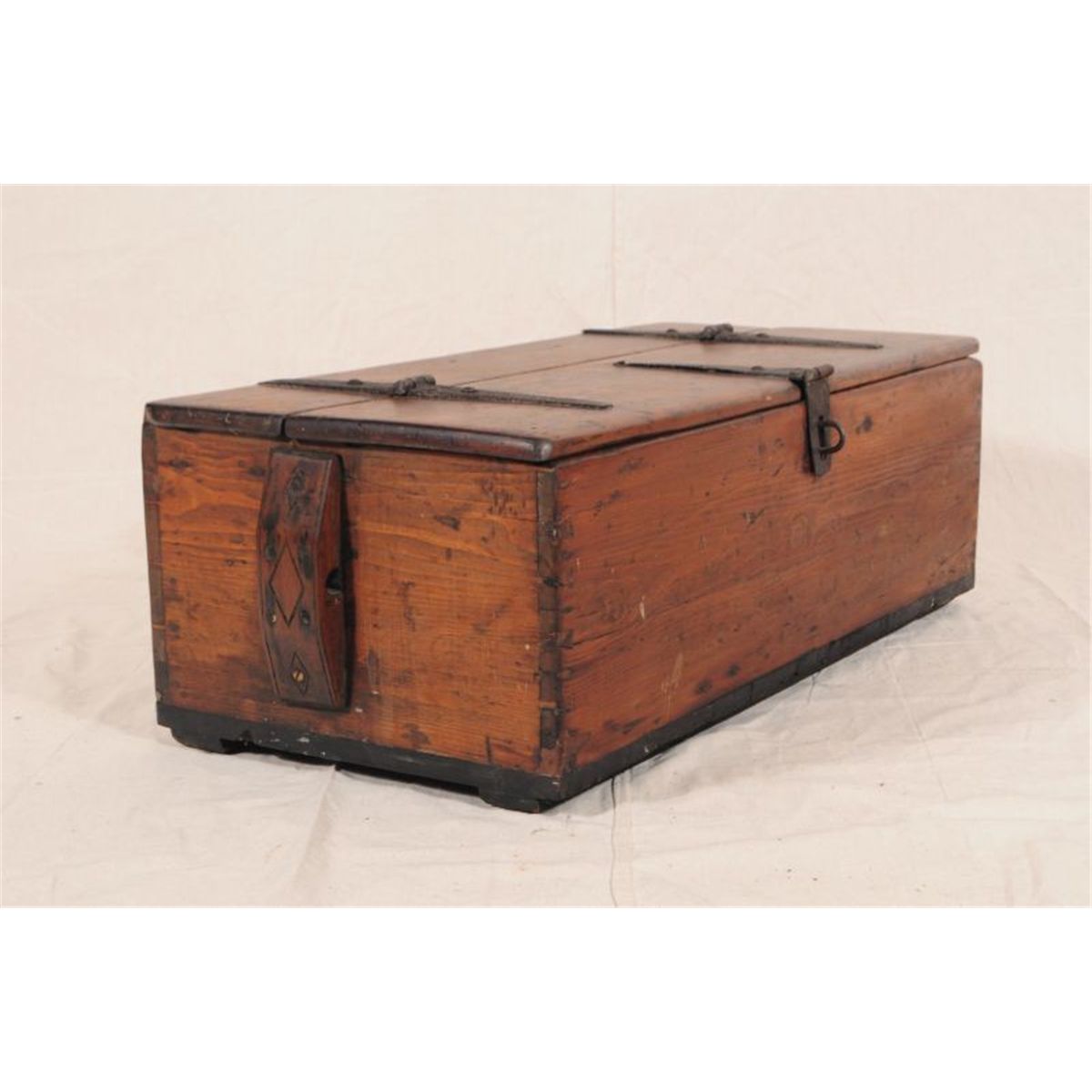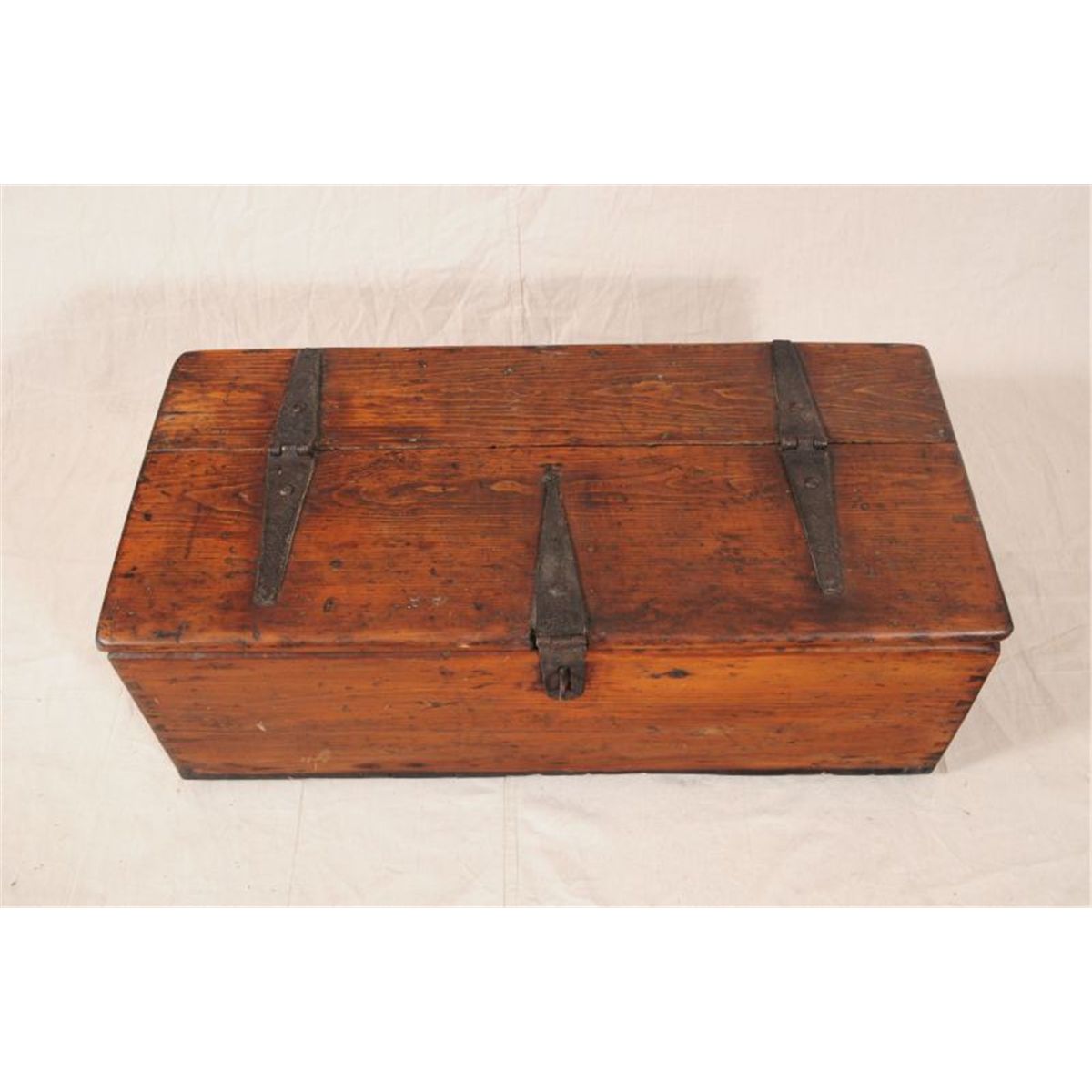 Large Hand Carved Wooden Tool Box, Dove Tailed Construction. Belonged to a Ship Bow Carver. Was purchased in New Orleans years ago by Louis. Measures 21"x41"