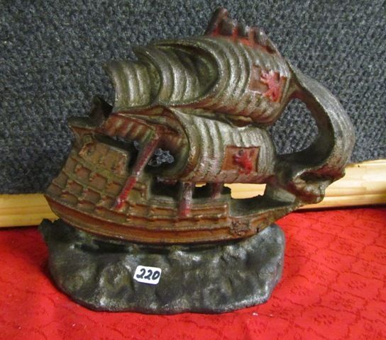 Ship in Strong Wind Iron Doorstop- original paint - 9" tall