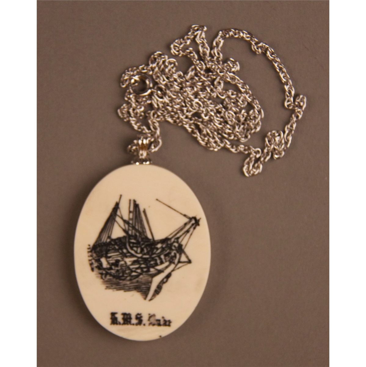 Ship Net Scrimshaw Ivory Pendant (Stamped Sterling) Ivory Pendant [1.8 (in),1.2 (in),0.2 (in)]