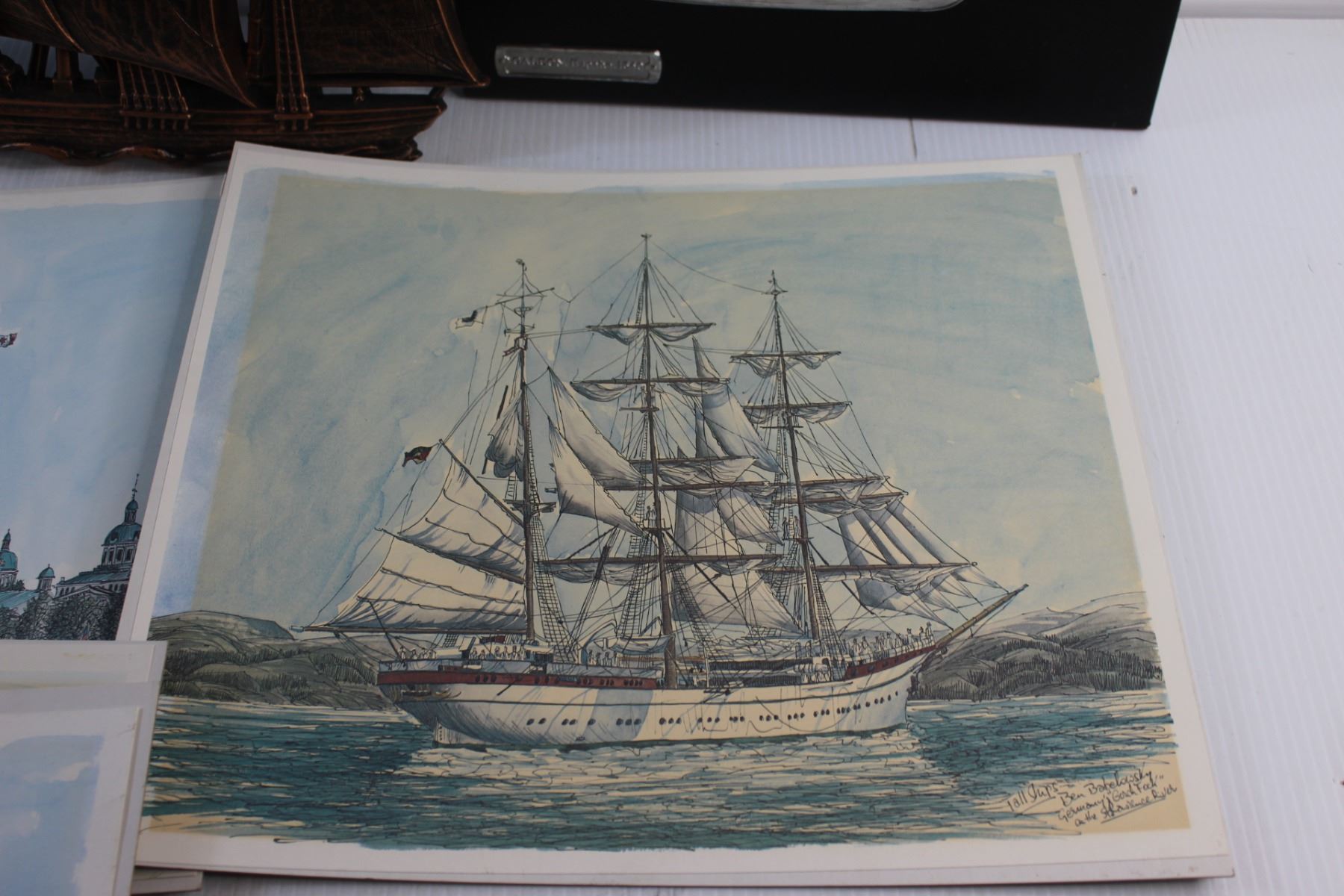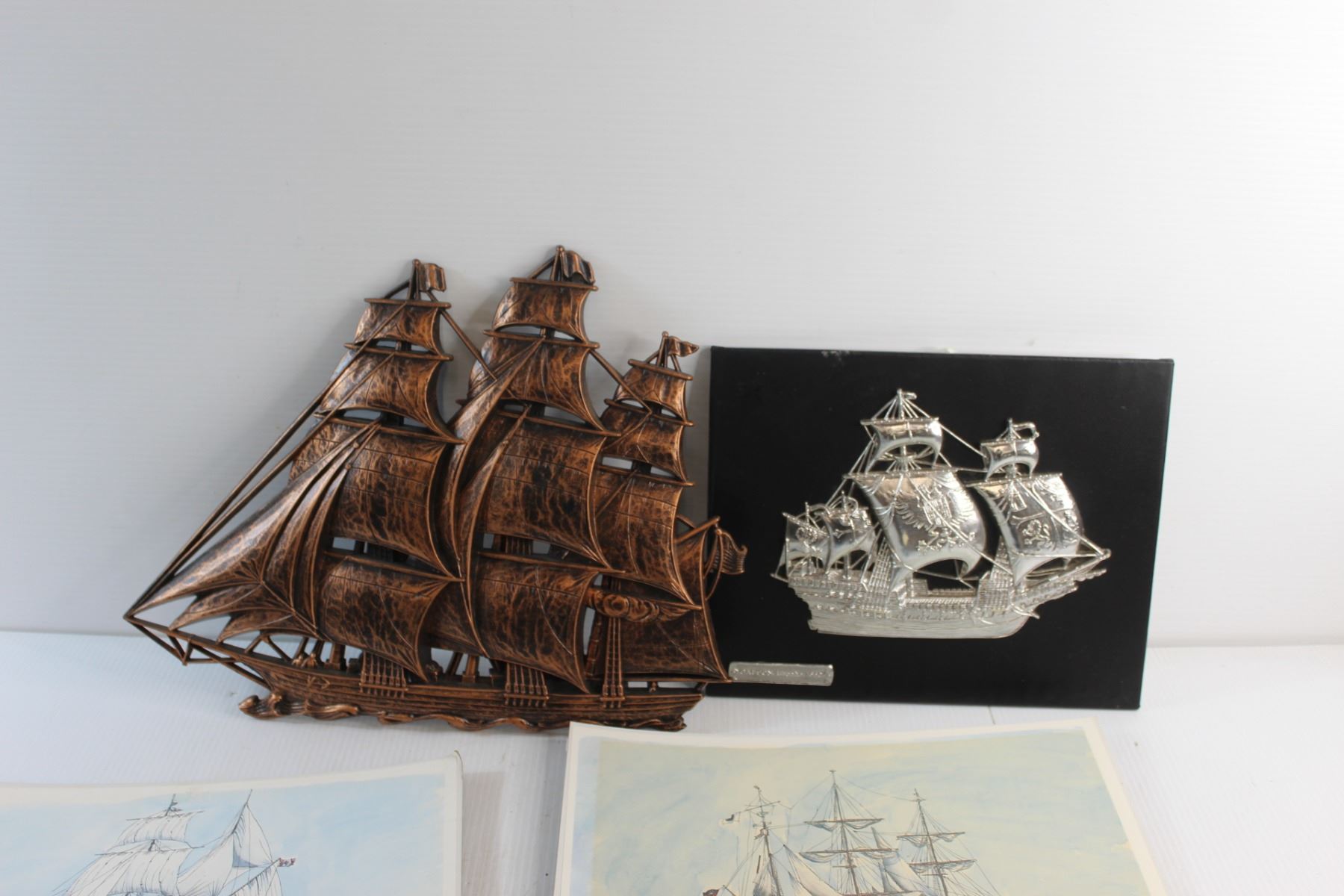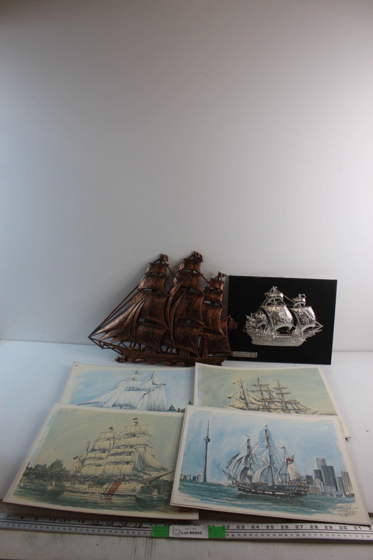 Ship Wall Decor and (4) Ship Prints 14'' x 12''