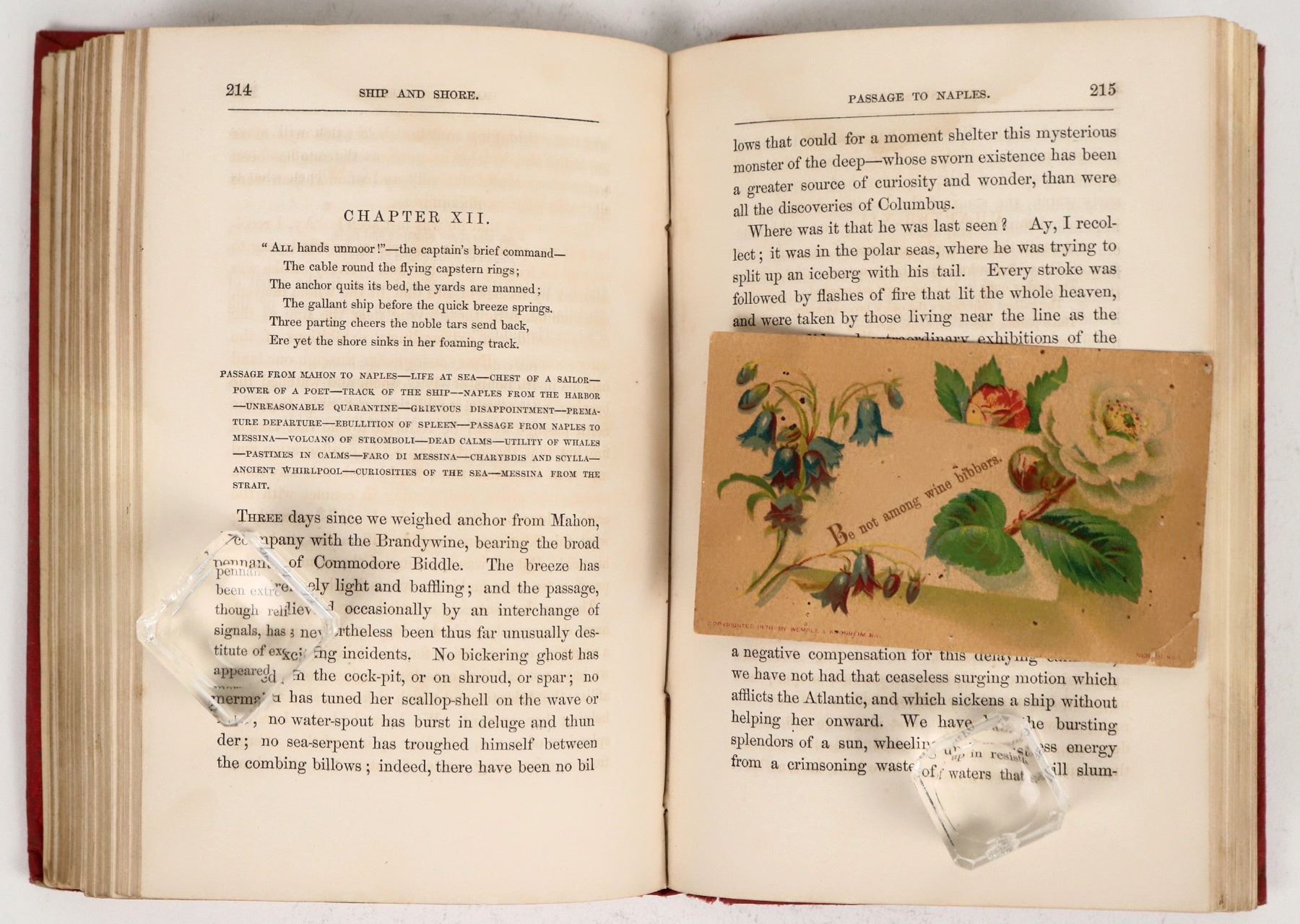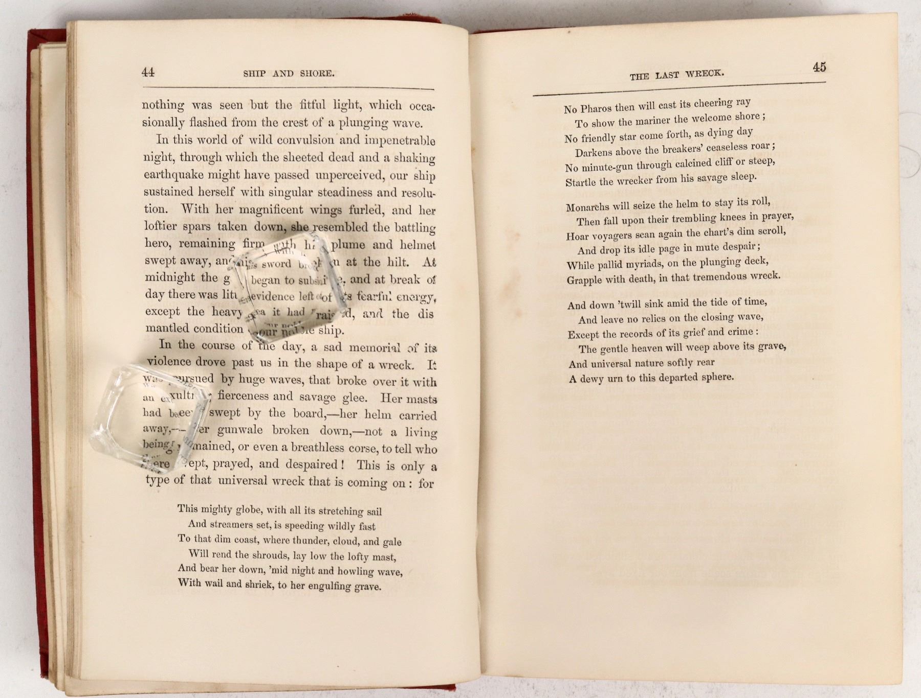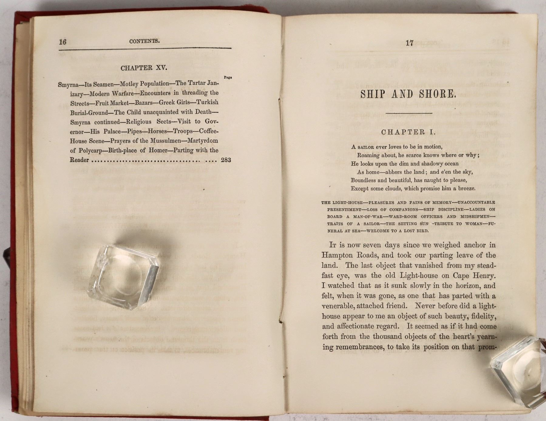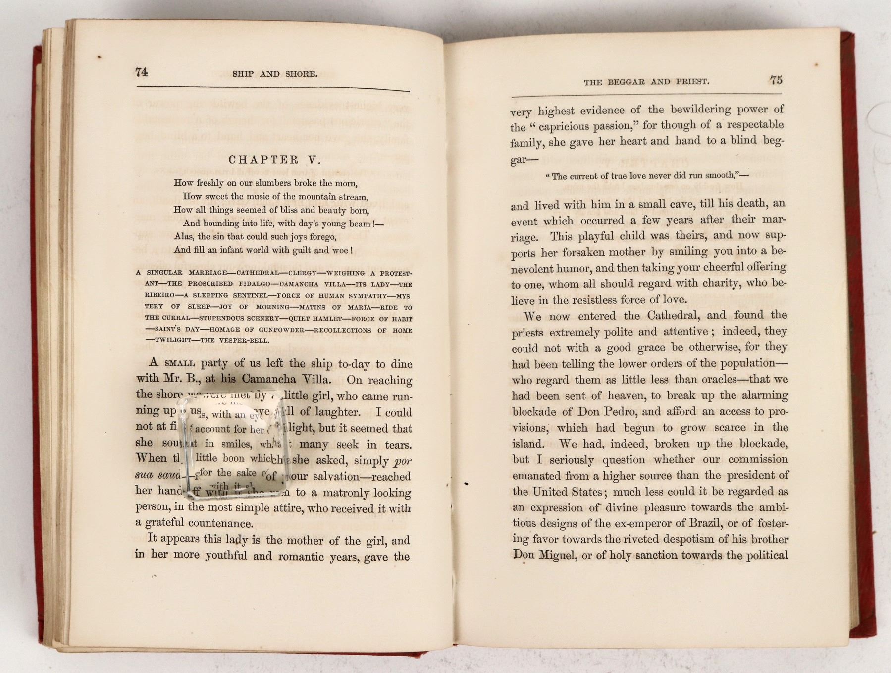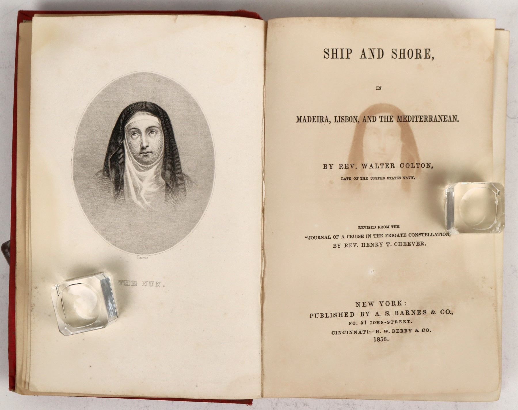 An 1856 copy of 'Ship and Shore in Madeira, Lisbon, and the Mediterranean' by the Reverend Walter Colton. Colton served as Chaplain in the Navy, was the first mayor of Monterey, CA and was a notable journalist and writer. Notable staining and cosmetic wear, some warping; see photos.