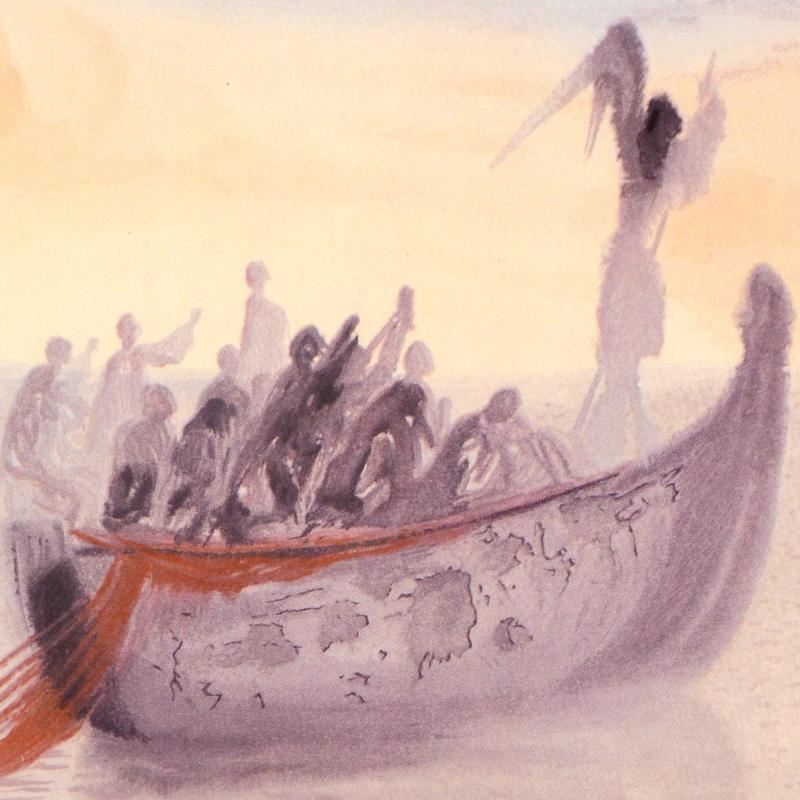 "Ship of Souls" is a limited edition glazed ceramic tile from a SOLD OUT edition by Salvador Dali (1904-1989), numbered and plate signed! This piece illustrates Dali's interpretation of canto 2 of "Purgatory", from the epic poem "The Divine Comedy". Measures approx. 8" x 10" (tile).