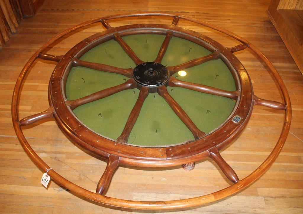 Taken from the "Duisburg Heinrich Velmer Sohoe". Made into a display table with 4 legs and a glass top which lifts off to display 8 guns. Measures 68" dia. Wood construction from gun collector's estate.
