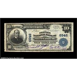 Shippensburg, PA - $10 1902 Plain Back Fr. 624 The Peoples NB Ch. # 6946A handsome example with good colors and vivid purple signatures. Fine-Very Fine. Important notice: We expect to be auctioning lots at the rate of 200-250 per hour. Sometimes eBay Premier live bid software cannot keep up with that pace, so we strongly recommend that you place a realistic proxy bid now as insurance to avoid disappointment. Also please note that all Heritage/CAA lots purchased through eBay Premier carry a 20% Buyer's Premium. Please make sure you read the Terms and Conditions.