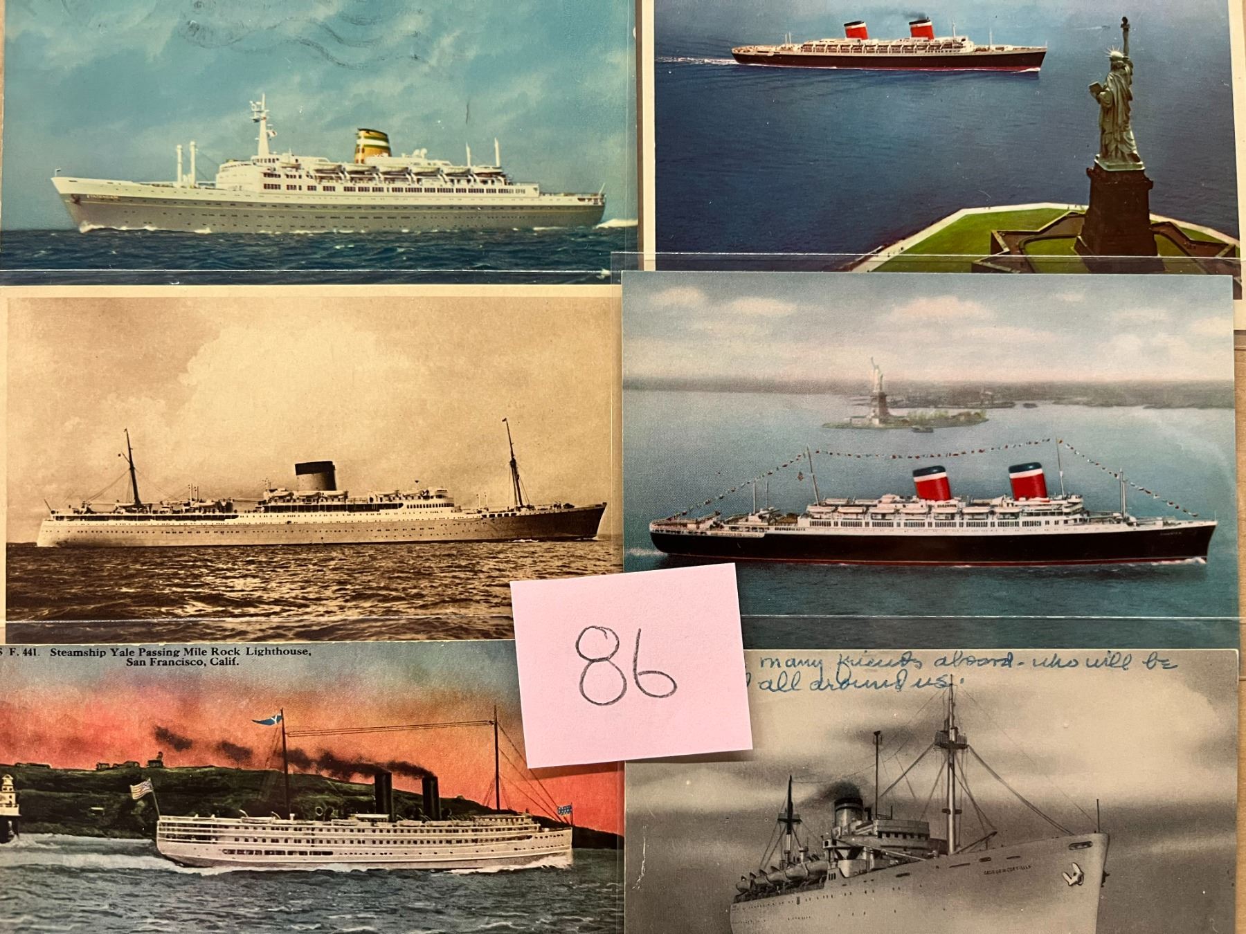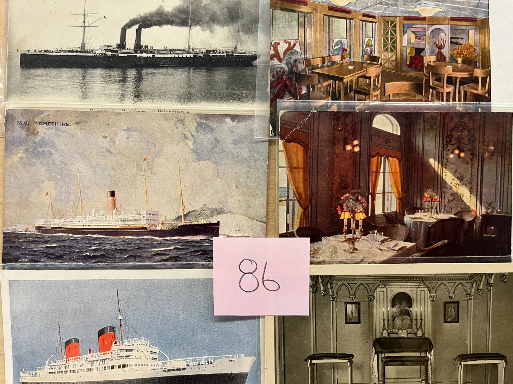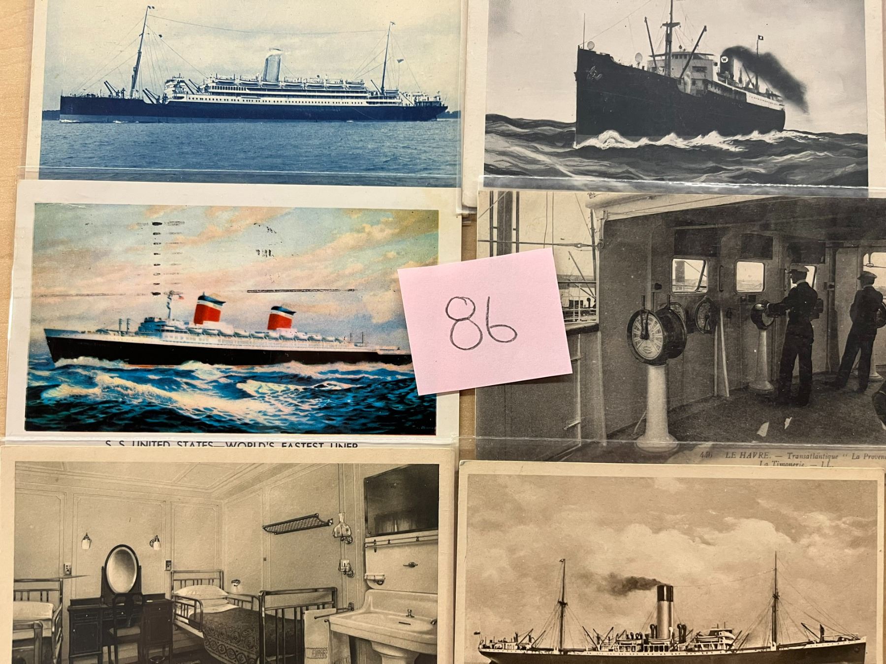 Over 110 cards of ships and ocean liners. Some interiors. Mostly pre chrome.