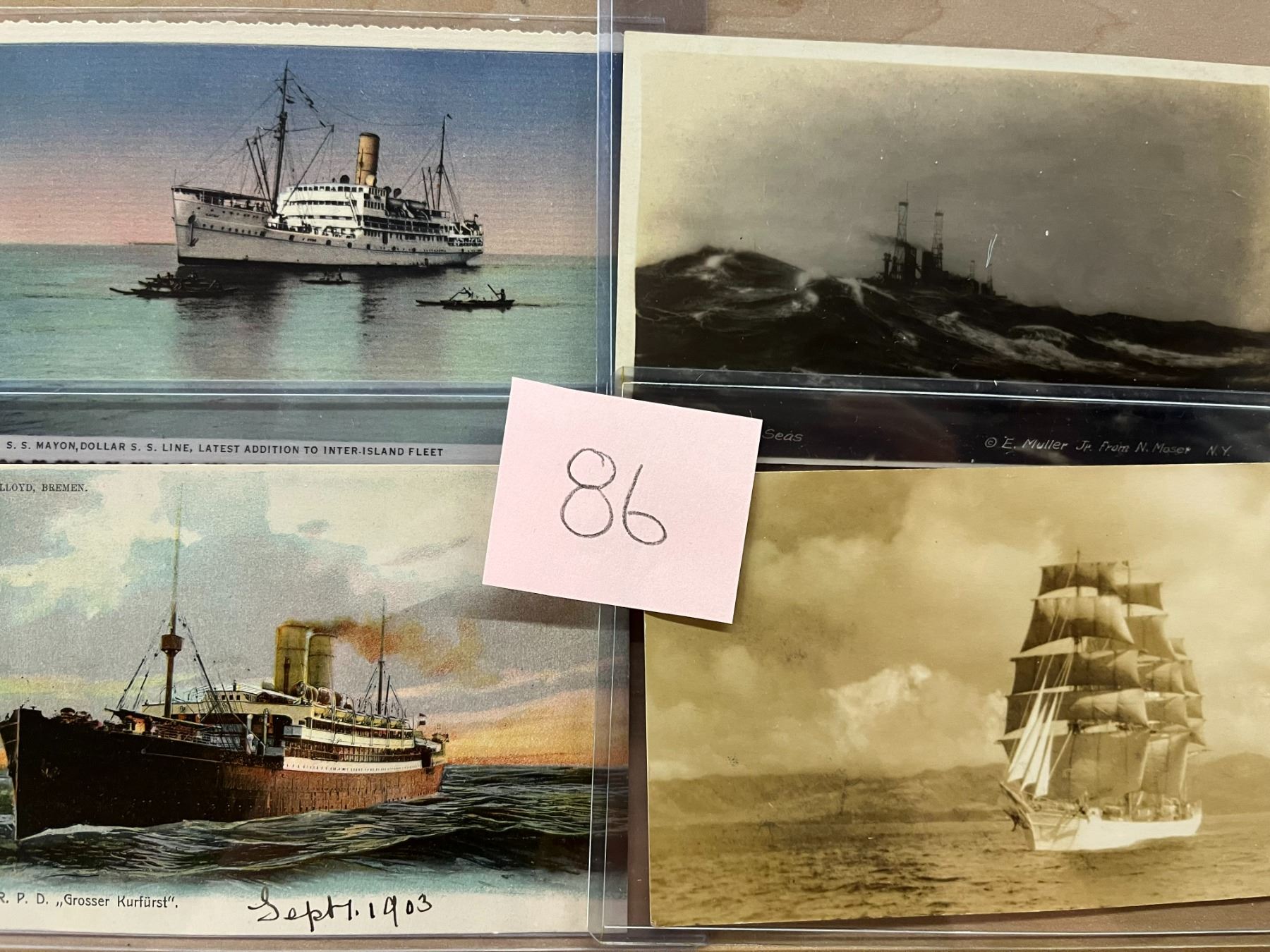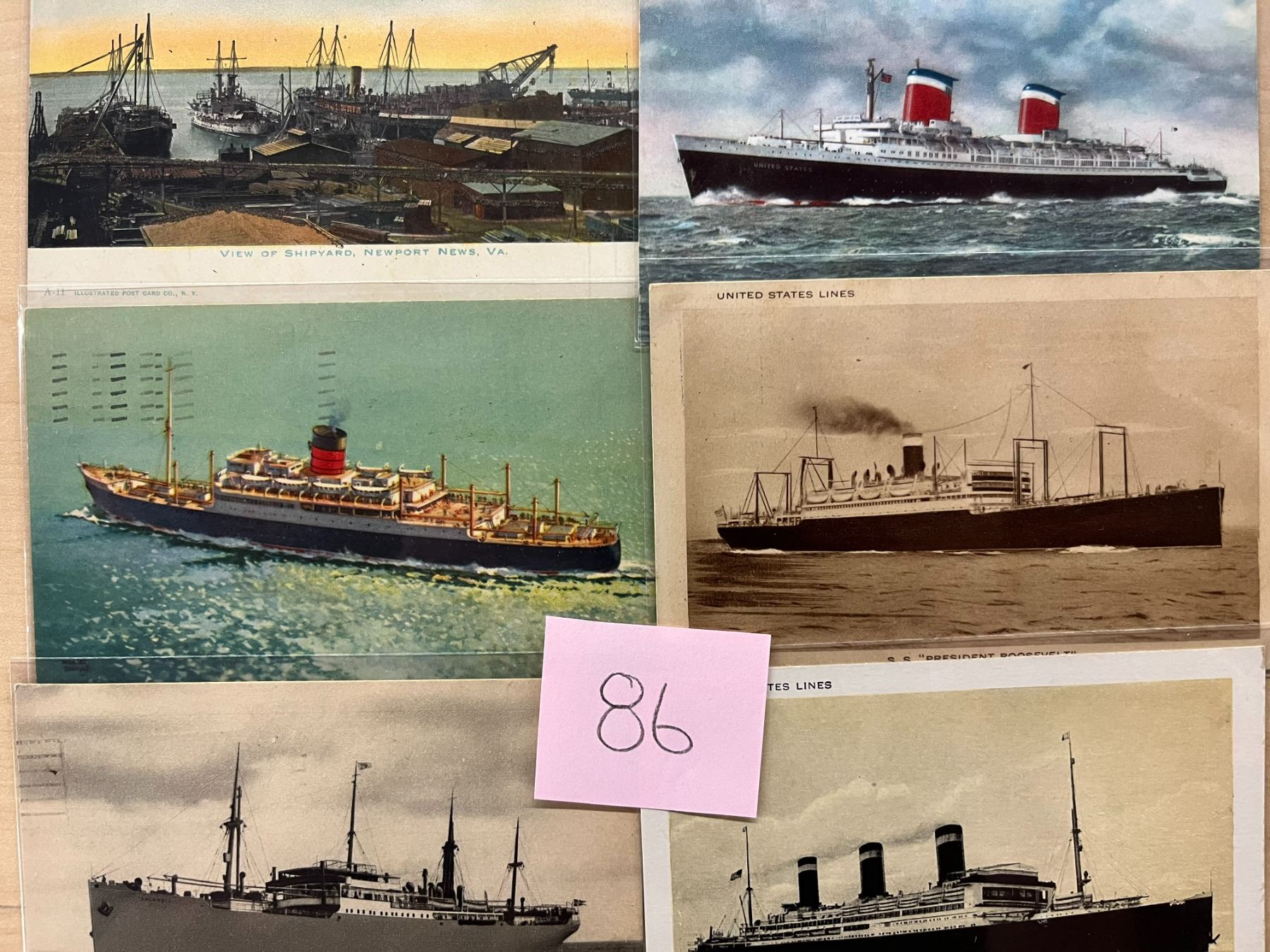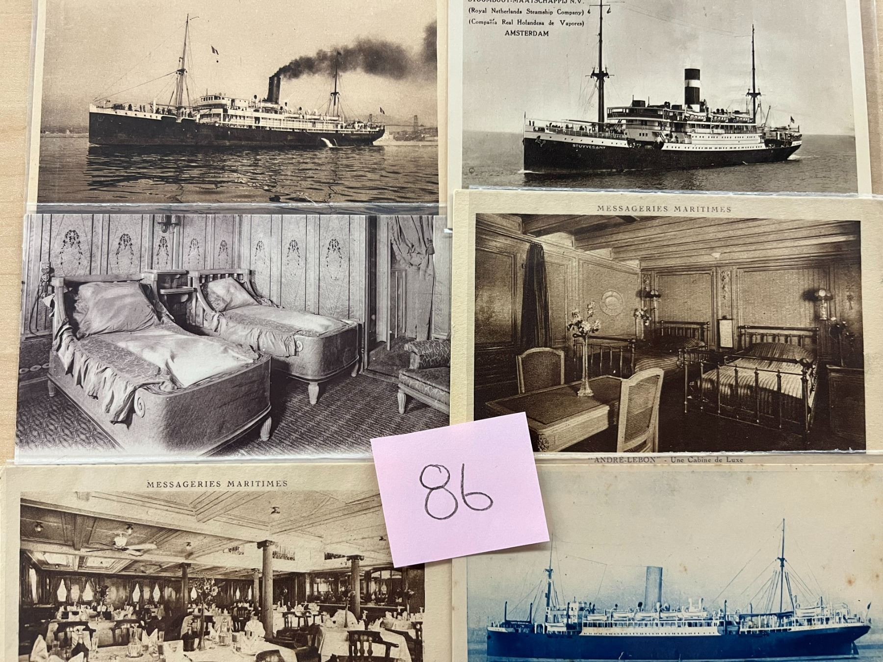 Over 110 cards of ships and ocean liners. Some interiors. Mostly pre chrome.