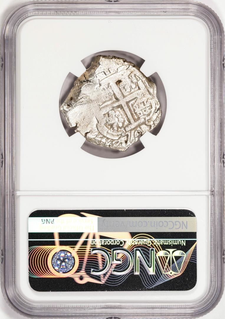 One Shipwreck 1745P q Bolivia 4 Reales Silver Coin NGC AU Excavation Recovery. NGC Certified.