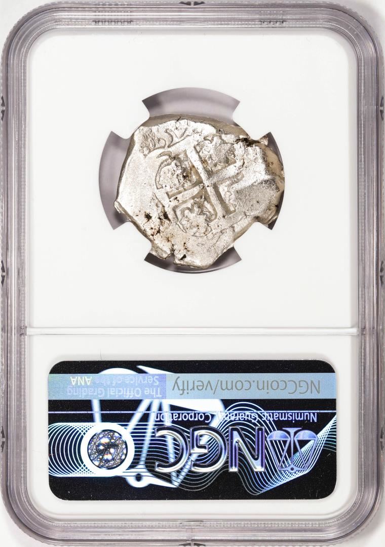 One Shipwreck 1745P q Bolivia 4 Reales Silver Coin NGC AU Excavation Recovery. NGC Certified.