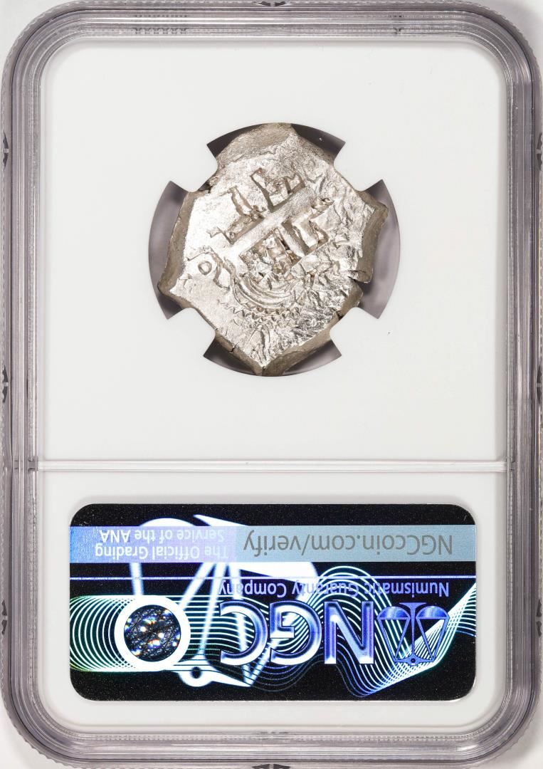 One Shipwreck 1753P q Bolivia 4 Reales Silver Coin NGC AU Excavation Recovery. NGC Certified.