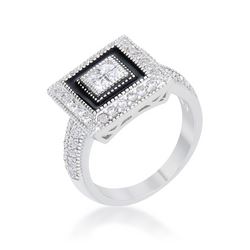 Clear stones accent an antique-inspired cocktail ring in this beautiful statement piece. This piece can certainly liven up a simple ensemble. Our genuine rhodium finish is achieved using an electroplating process that coats the item with heavy layers of rhodium a close cousin to platinum. This gives our jewelry a platinum luster.Base Metal: Lead Free Alloy (Brass)Style: , Setting Type: PaveMaterials: , Stone Cut: RoundCarat Weight: 0.7ctColor: , Plating Color: SilvertoneChain Clasp: 8.00Ring Band Width: 3.5 mmBracelet Size: 22 mm L x 14 mm W x 9 mm HStone Size: 1.3 mm| 2 mmType: Ring
