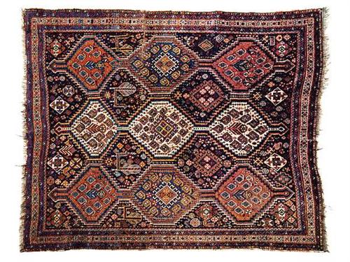 184 x 157 cm Wool, ghiordes knotting South-Iran, late 19th century Worn.
