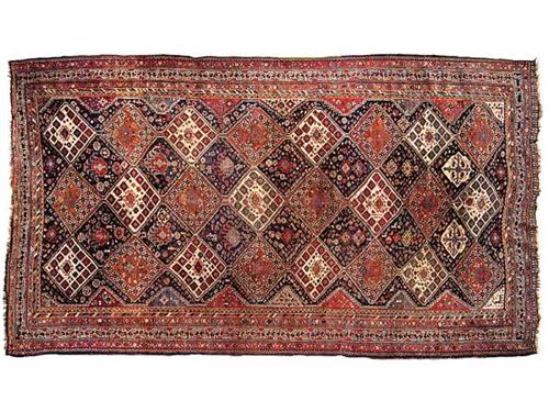 322 x 187 cm Wool, sehna knotting Southwest Iran, Kashkay region, early 20th century. Slightly Worn.