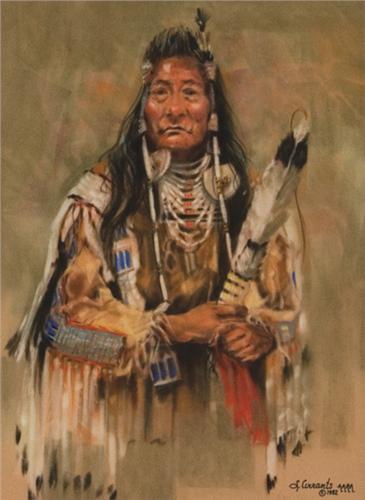 Shirley Arrants (b. 1941). Crow Chief, 1982. 12" x 9" pastel on board. Signed lower right. (est $1,000-1,500). Provenance: Coile Collection.