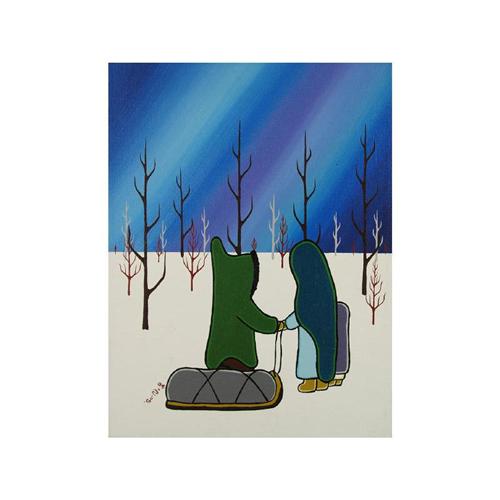Canadian, Michigeeng [b. 1952] THANKS FOR HELPING ME; 1984 acrylic on canvas 16 x 12 in. (40.6 x 30.5 cm) signed, titled & dated; signed in syllabics